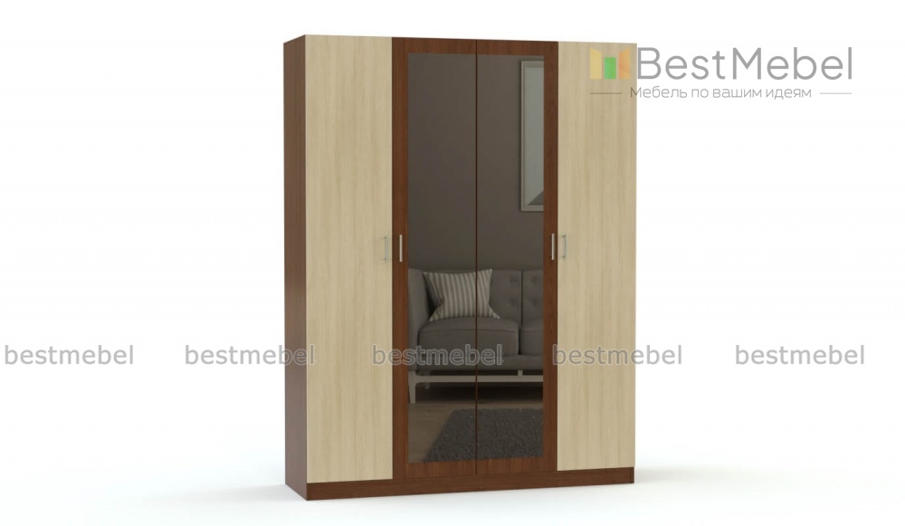 Распашной шкаф Уют Н 1 BMS легко решит проблему хранения большого количества вещей и визуально расширит границы комнаты. Четырехдверная модель, оборудованная платяным отделением и бельевыми полками, бережно разместит постельные принадлежности и одежду. Шкаф традиционно надежной распашной конструкции выполнен в теплых древесных тонах и дополнен ростовыми зеркалами. Купить распашной шкаф Уют Н 1 BMS приглашаем в наш интернет-магазин с выбором фурнитуры и цвета по каталогу.