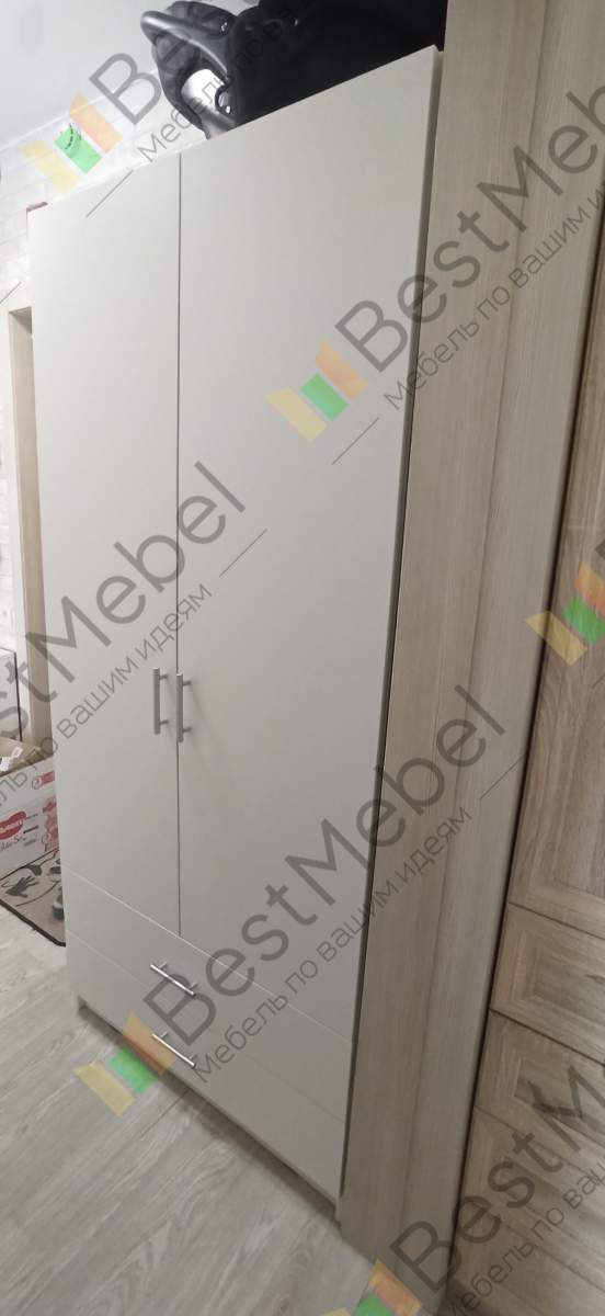 Выбирали шкаф в расцветку кровати, дуб Сонома белый мат. Качество отличное, все супер. Единственное хотелось бы схему сборки более качественную, а не маленький рисунокНа фото шкаф шириной 90см, глубина 42, высота 210