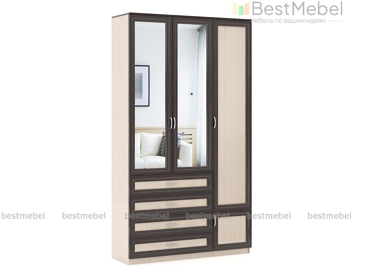 Оригинальный дизайн шкафа для одежды ШКК-02 отвечает современным модным тенденциям. Помимо одного платяного отделения и двух отделений для нижней одежды с полками, он состоит также из четырёх вместительных выдвижных ящиков и одного отделения для хранения обуви. Крепкая фурнитура внутри отвечает всем требованиям качества. Заказать данную модель у нас на сайте Вы можете в удобное для Вас время, с возможностью изменения цвета и размеров изделия.