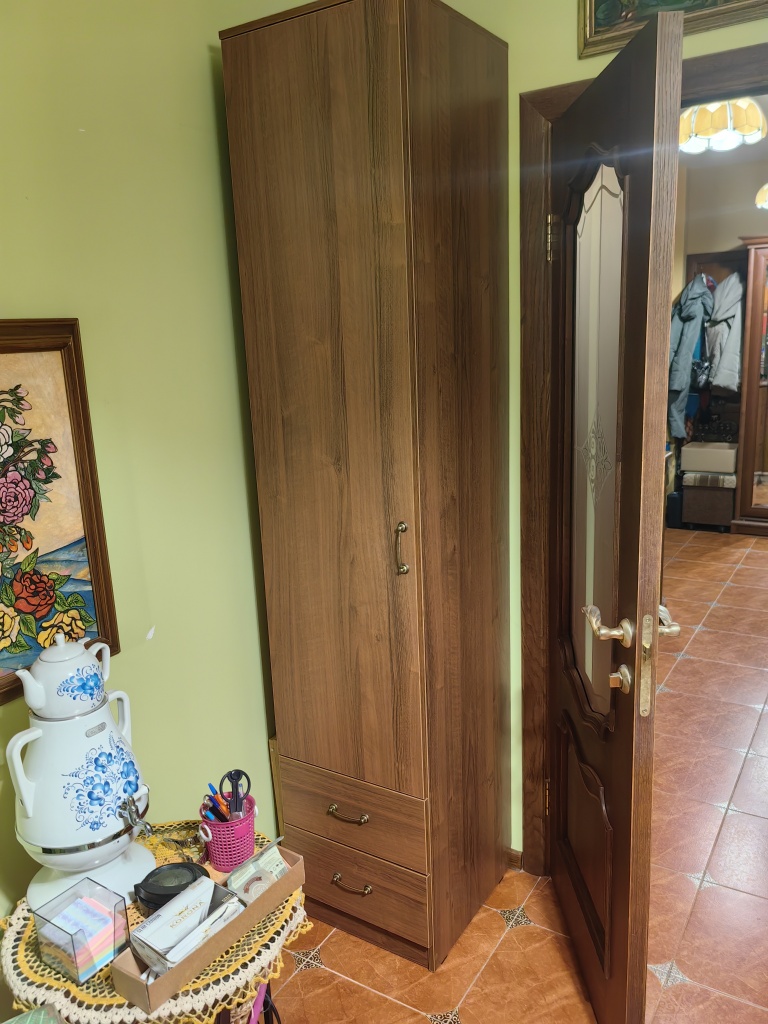 Заказывала шкаф по своим параметрам в сером цвете как продолжение гарнитура с прихожей. Простой, без излишеств, без декора, серый цвет смотрится красивее, чем я представляла, оттенок матового серебра. Заказывала с самой дешевой фурнитурой, по факту все работает, ящики выкатываются легко, не заедают, с полозьев не выпадают. Ручки с цветом смотрятся гармонично. Мне нравится, обычный хороший шкаф в стильном цвете, нам подошел в прихожую идеально!