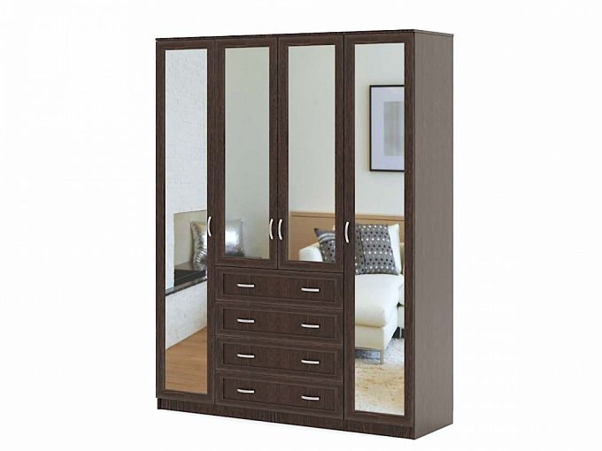 Классика 4.4.4з-Ф – габаритный, но очень вместительный шкаф, который будет отлично смотреться в спальне или прихожей. Размеры и наличие зеркал позволяют сделать его элементом даже самого изысканного интерьера. Нижние ящики служат для хранения мелочей и аксессуаров. В отделении повыше можно хранить верхнюю одежду, костюмы и платья. А вот в боковых отделениях найдется место для кофт, свитеров и других вещей. Купить шкаф Классика 4.4.4з-Ф можно на нашем сайте.