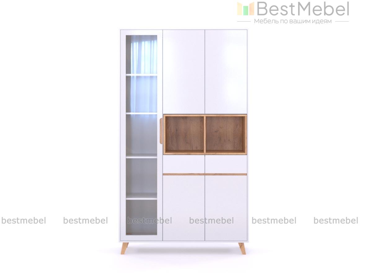 Шкаф книжный Фоко 1 BMS выполнен в сочетании древесных тонов с белым глянцем и гармонично впишется в современные интерьеры. Комбинированная модель оборудована глухими распашными отделениями для разнообразных бытовых вещей, парой выдвижных ящиков для мелочей, разделенной перегородкой нишей и застекленными книжными полками. Расположенный на высоких скошенных ножках, шкаф отличается устойчивостью и визуальной легкостью. Купить шкаф книжный Фоко 1 BMS приглашаем к нам в интернет-магазин.