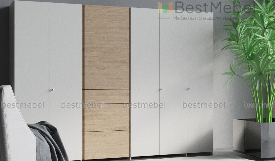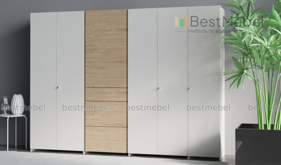 Шкаф модульный Жерар 1 BMS подчеркнет достоинства интерьеров в стиле лофт, минимализм или скандинавском. Лаконичный и высокофукциональный, модульный комплект выполнен в сочетании белого и крафтовых древесных тонов. Организовать удобное хранение одежды, аксессуаров и постельного белья помогут распашные платяные отделения, бельевое и вместительные выдвижные ящики. Простота и надежность конструкции станет залогом комфортной эксплуатации. Купить шкаф модульный Жерар 1 BMS для просторной спальни приглашаем в наш интернет-магазин.