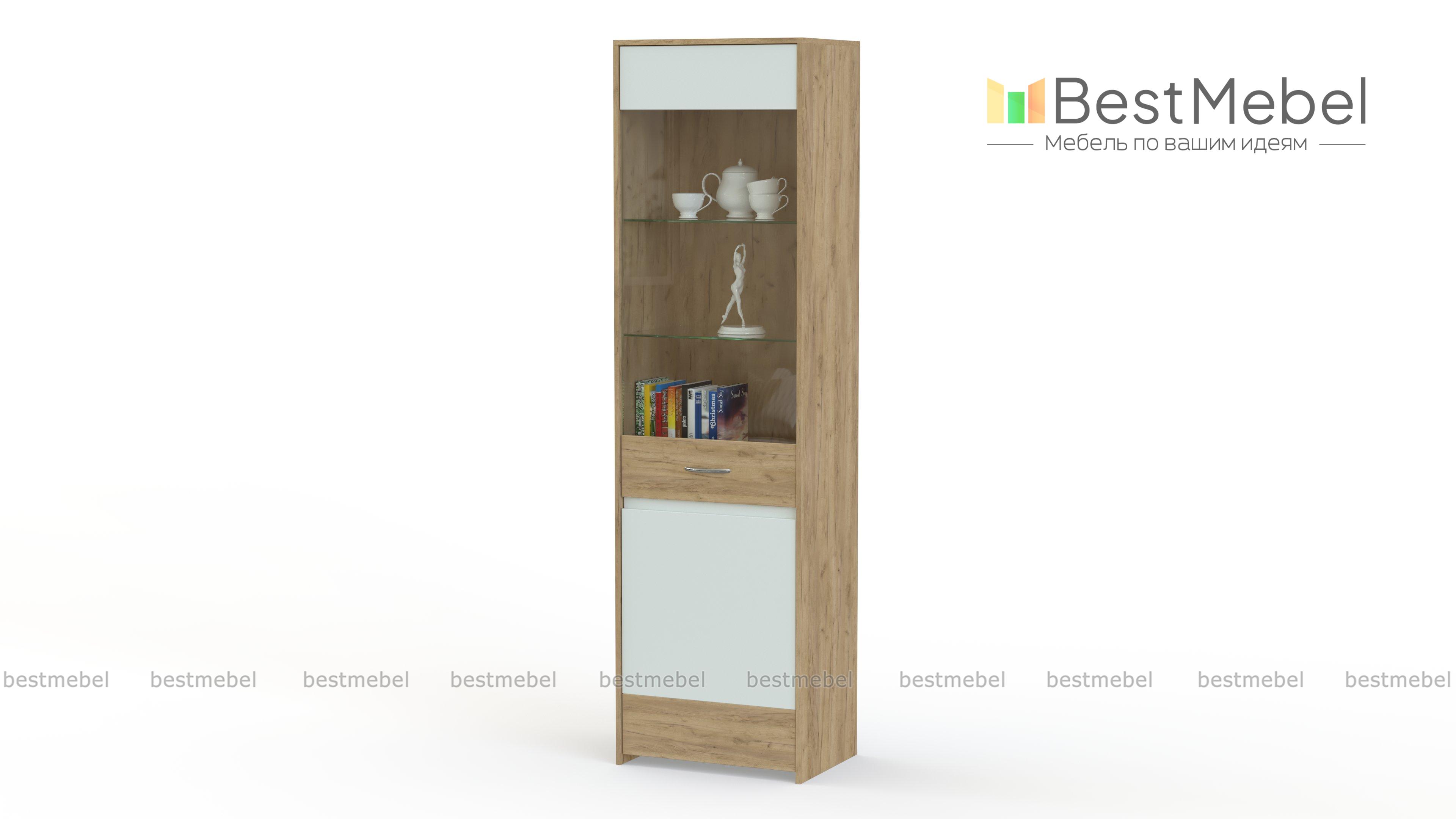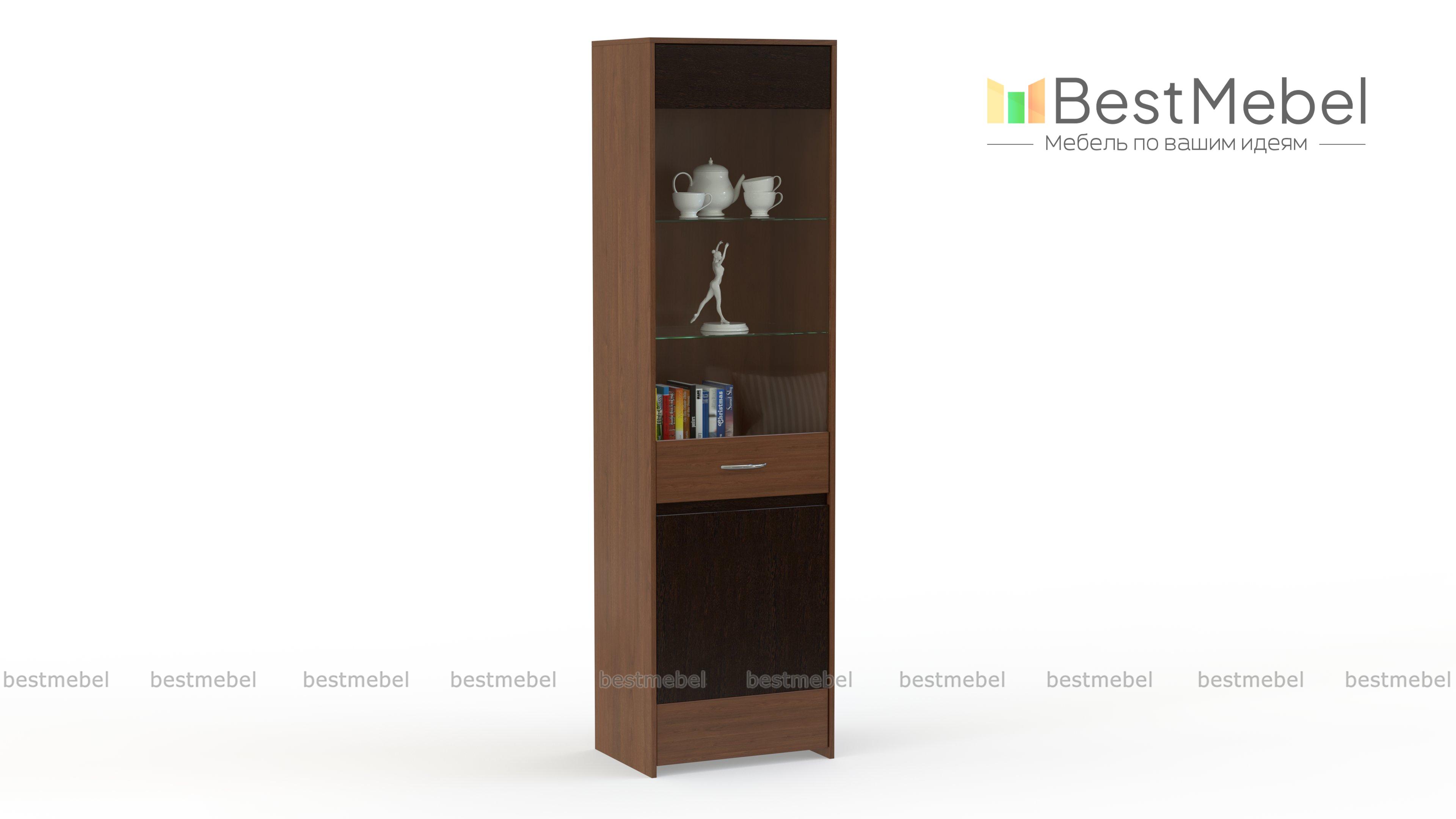 Шкаф-пенал Лайс BMS позволит создать комфортный интерьер с элементами стиля лофт. Корпус высокого шкафа выполнен в теплом древесном оттенке, а в оформлении фасада скомбинированы темный контрастный цвет и прозрачное стекло. За распашной дверцей располагаются две классические полки для хранения разнообразных бытовых вещей и две стеклянные, предназначенные для посуды, книг и предметов декора. Купить шкаф-пенал Лайс BMS для современной гостиной приглашаем в наш интернет-магазин