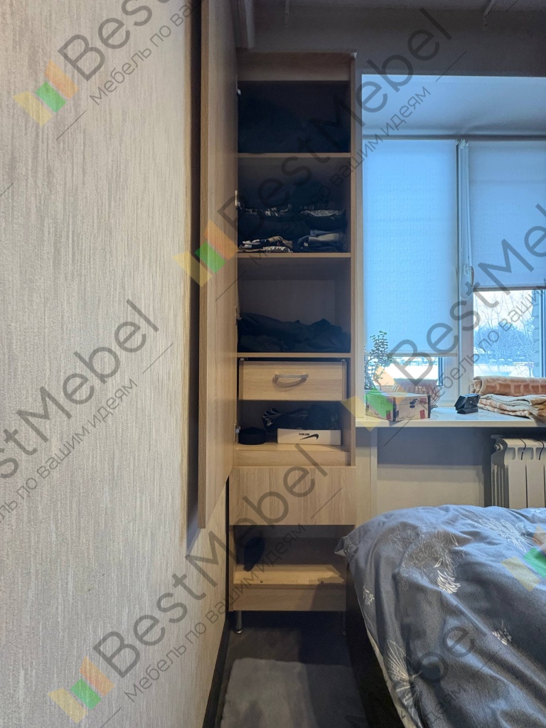 Хотел шкаф, но места мало. Нашёл на Ozon. Слегка выпивший, снял размеры. Шкаф пришёл — на место встаёт. А то, что не всё открывается, — это проблемы шкафа. Пришлось самому чуть‑чуть доработать, но это мой косяк. Шкафом доволен. Руководство по сборке почему‑то не открывается на компьютере; с телефона читать не очень удобно, но это не критично.