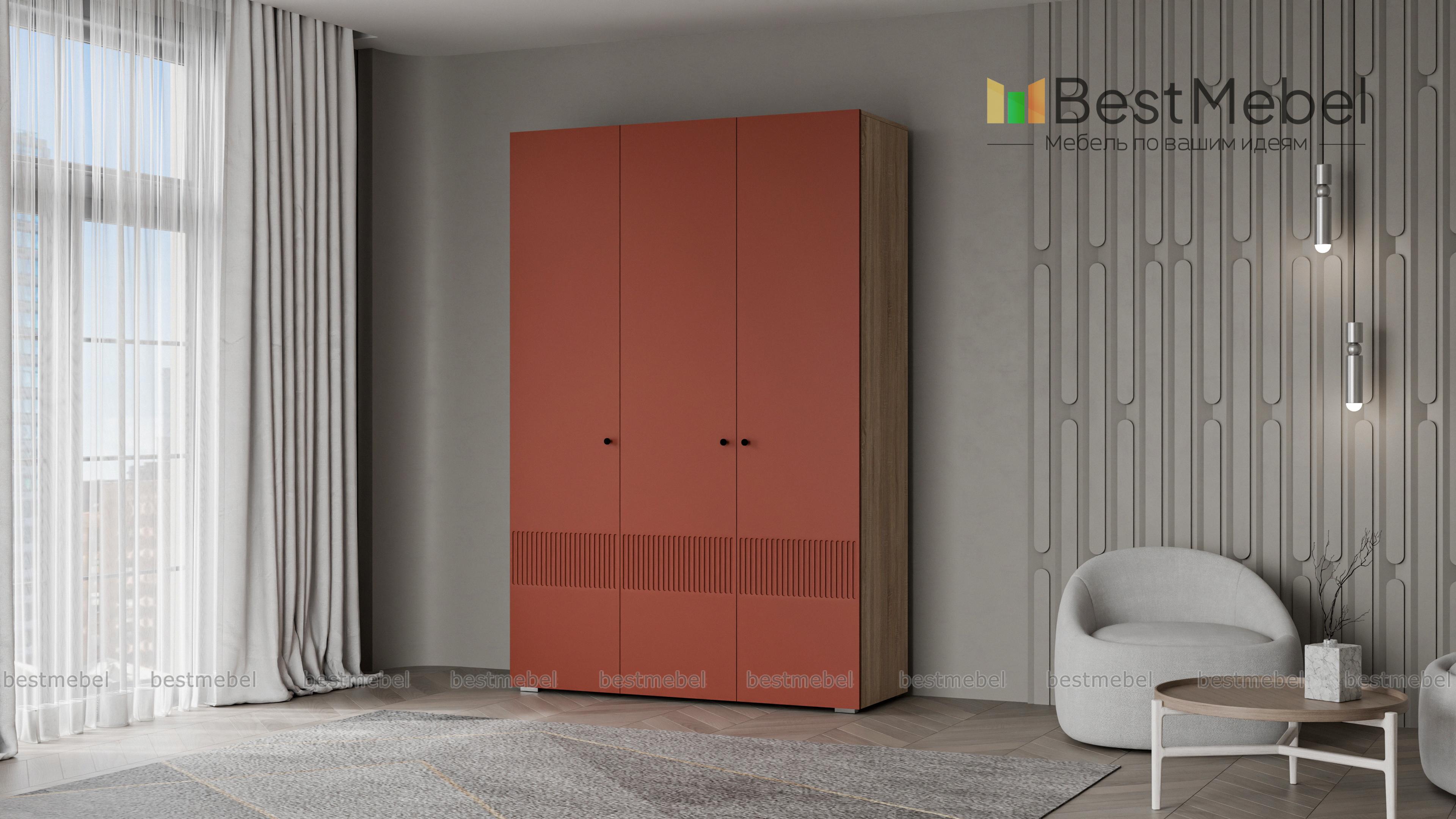 Шкаф распашной Джосс 3 BMS — компактный и стильный в двух актуальных оттенках. В отделке сплошного фасада, выполненного из устойчивой к повреждениям МДФ, использован оригинальный рельеф, дверцы легко открываются с помощью маленьких круглых ручек. Для разных вариантов хранения в трехдверной модели предусмотрены как штанга, так и секция с полками. Купить шкаф распашной Джосс 3 BMS с выбором размеров, цвета и фурнитуры вы сможете в нашем интернет-магазине.