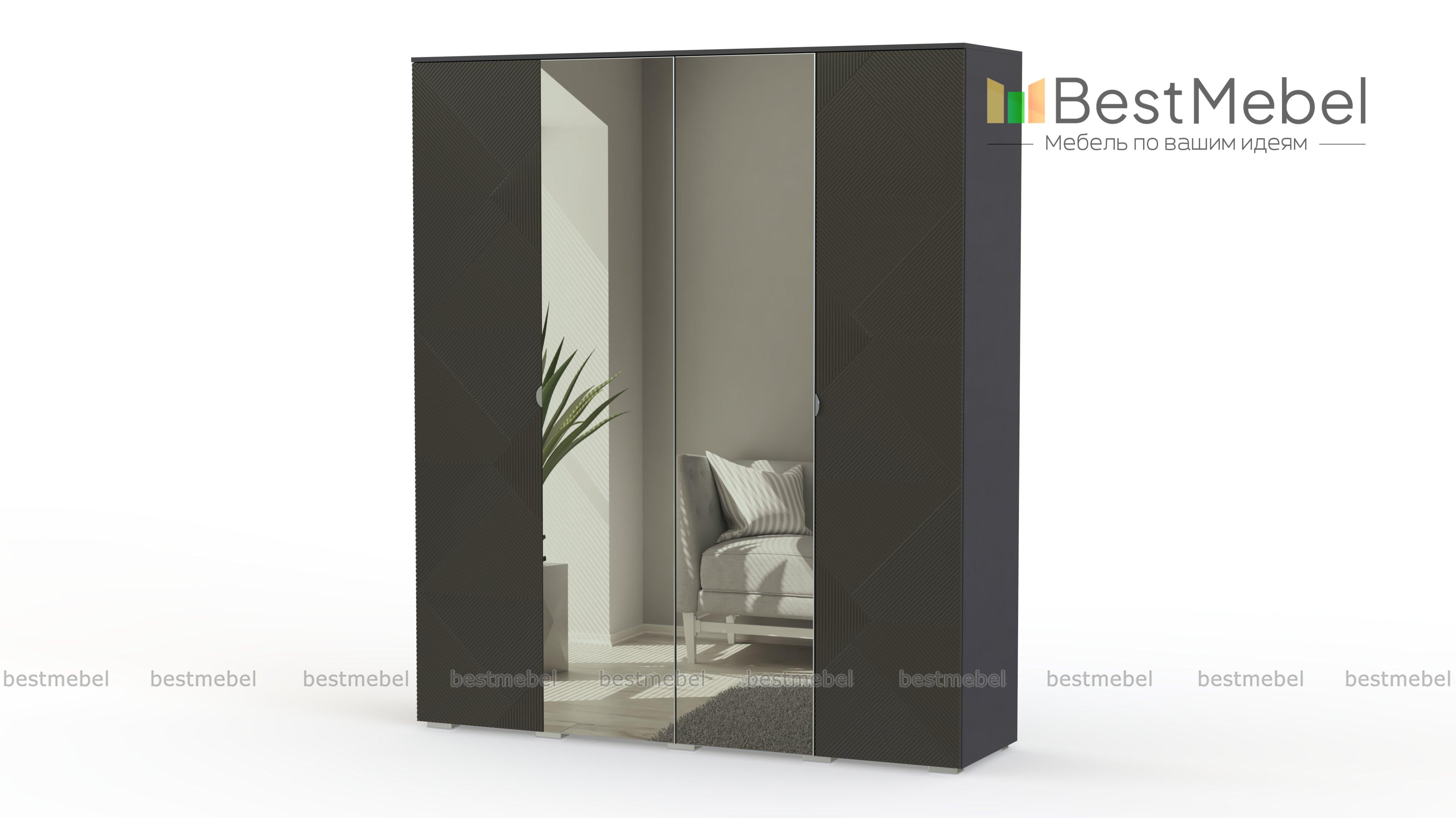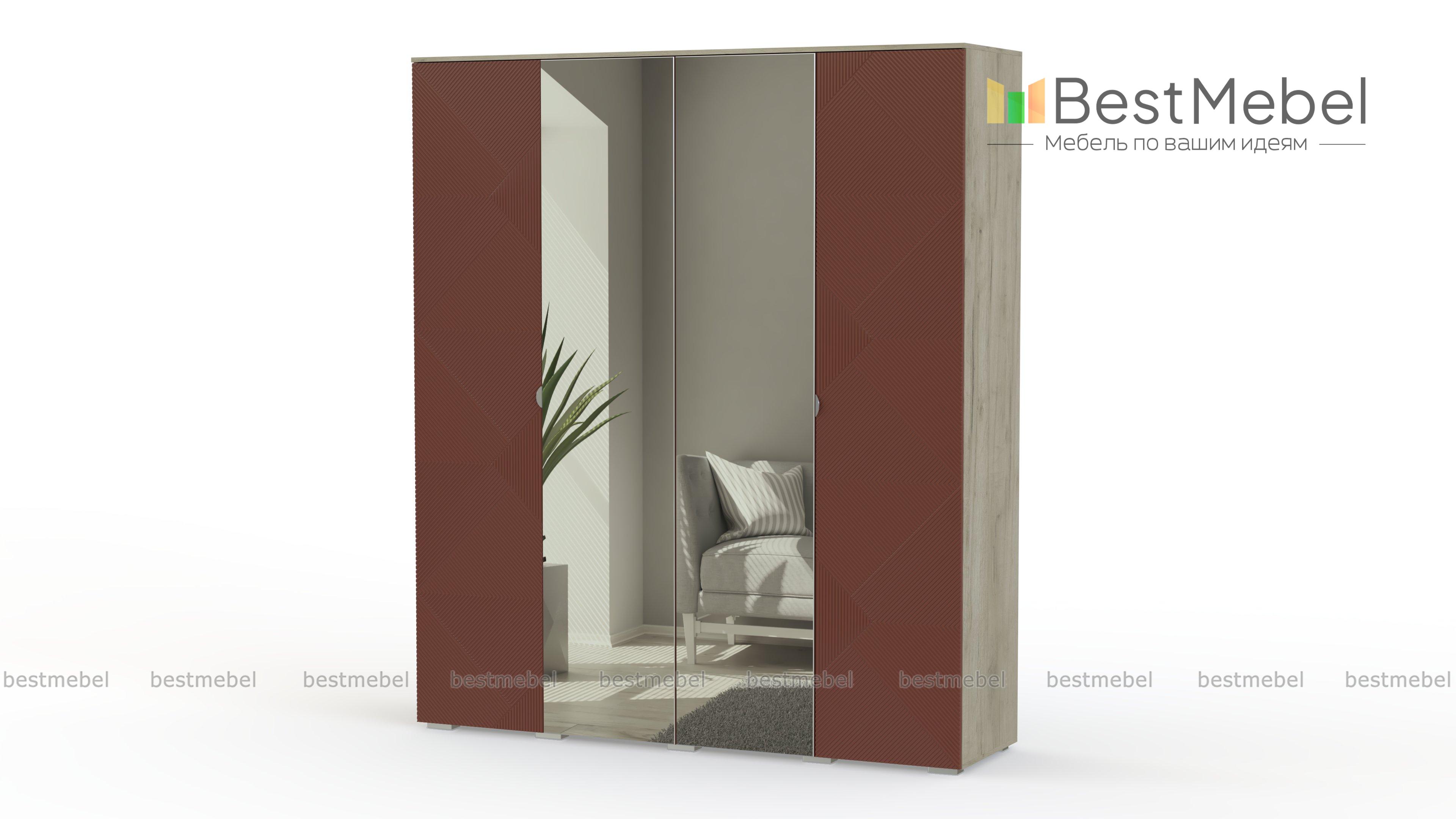 Шкаф распашной Эрнеста 16 BMS сочетает в себе элегантность с дизайнерскими трендами. Цветные боковые фасады четырехдверной модели украшены геометричным рельефом, а центральные створки – полностью зеркальные. Отличаясь хорошей вместительностью, шкаф не утяжеляет интерьер и придает комнате дополнительную глубину и объем. Купить шкаф распашной Эрнеста 16 BMS для хранения гардероба и постельных принадлежностей вы сможете на сайте нашего интернет-магазина.