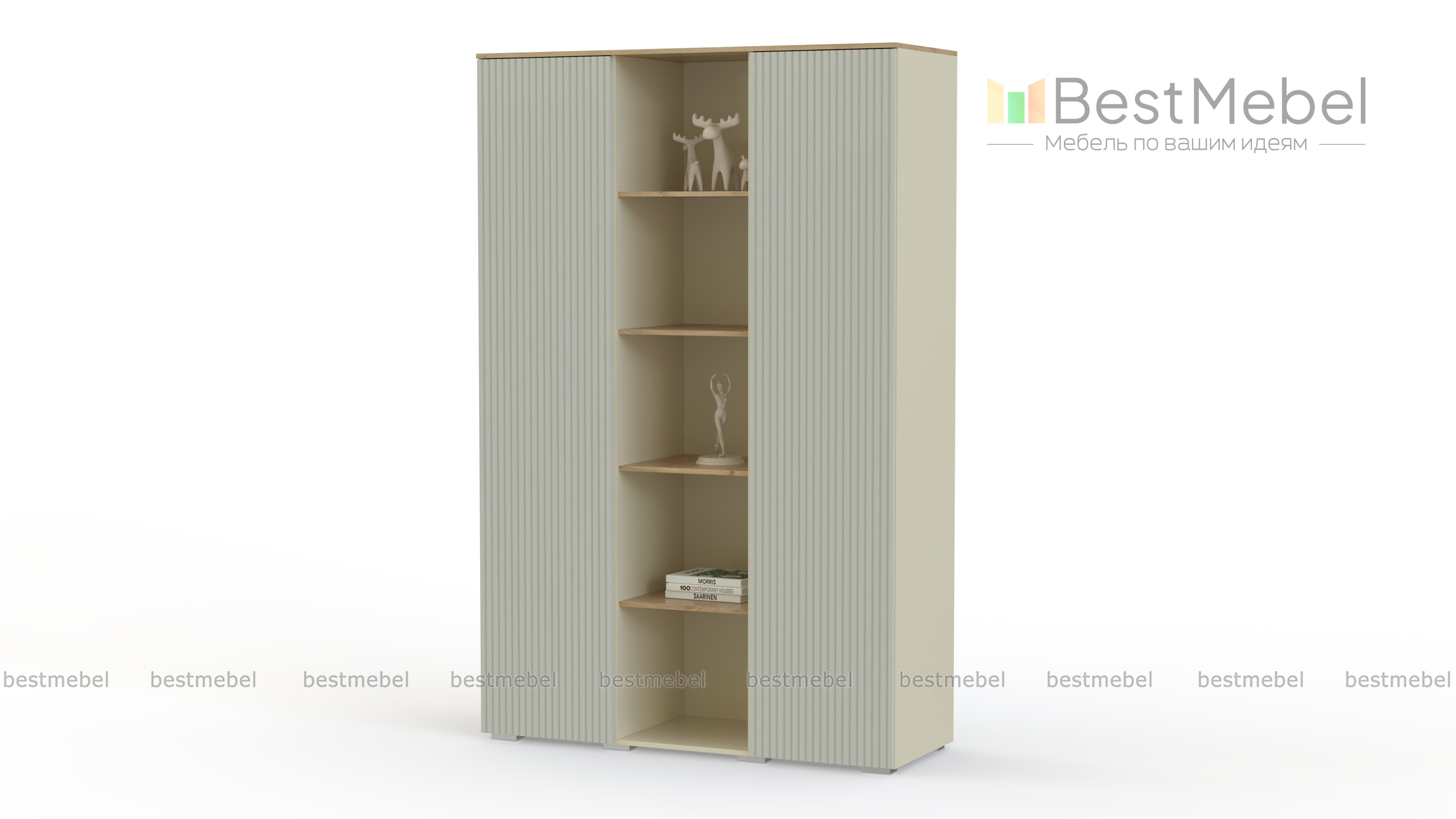 Шкаф распашной Эвил 22 BMS оборудован двумя закрытыми боковыми отделениями и просторными полками для книг или декора в центре. Многофункциональная модель будет востребована в интерьере гостиной или спальни для хранения и демонстрации вещей. Особенную выразительность шкафу в нейтральной цветовой гамме придают древесные акценты и вертикальная фрезеровка фасада. Купить шкаф распашной Эвил 22 BMS приглашаем в наш интернет-магазин с выбором цвета и размеров.