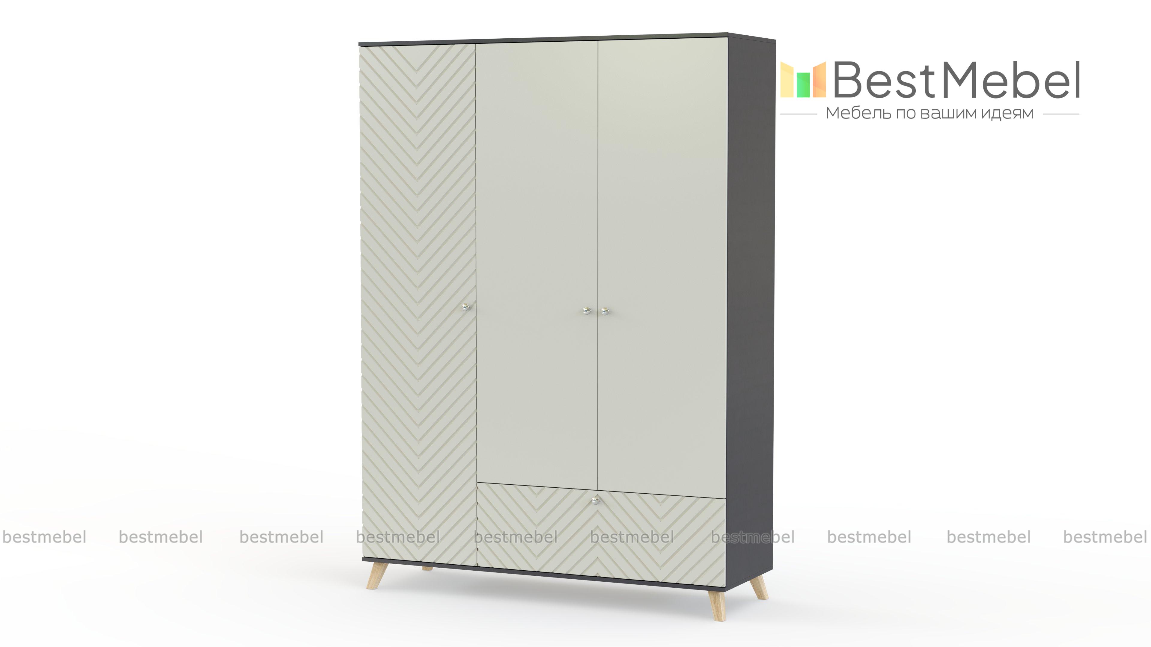 Шкаф распашной Хобарт 25 BMS с геометричным рельефом в отделке фасада и спокойной теплой палитрой воплощает современные тренды. Три распашных отделения, в которых скрыты штанга и полки, дополнены вместительным выдвижным ящиком. Конструкция не выглядит громоздкой с высокими деревянными опорами и впишется даже в малогабаритные помещения. Купить шкаф распашной Хобарт 25 BMS с выбором необходимых размеров, цвета и фурнитуры вы сможете в нашем интернет-магазине.
