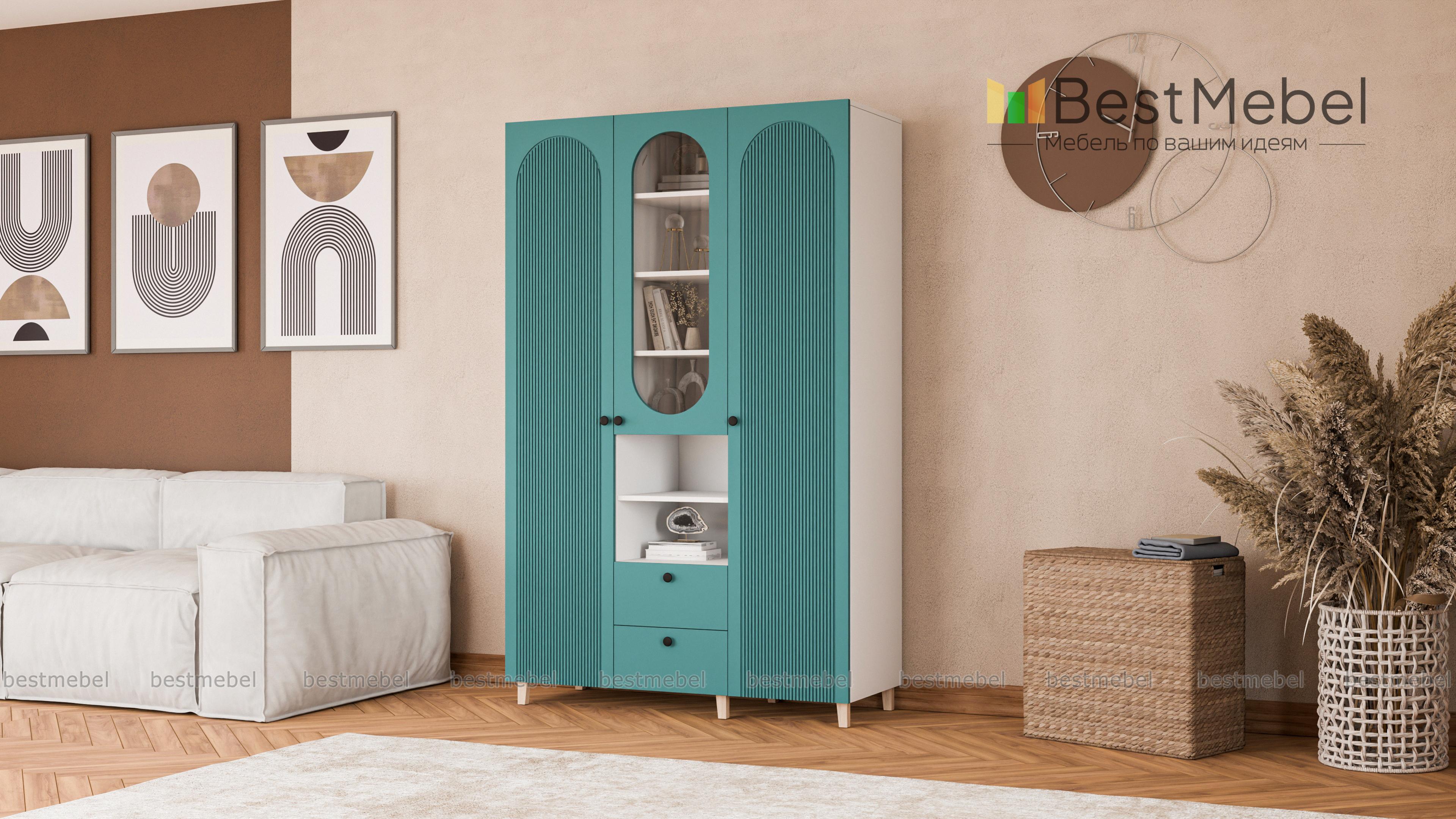 Шкаф распашной Рене 11 BMS с деревянными опорами поможет вам красиво и удобно оформить гостиную, детскую комнату или спальню. Декоративные овальные вырезы смягчают острые углы, а уюта добавит теплая цветовая гамма. Два закрытых распашных отделения разделены комбинированной секцией со стеклянной дверцей, открытыми полками и двумя выдвижными ящиками. Купить шкаф распашной Рене 11 BMS можно на сайте нашего интернет-магазина, подобрав размеры и оттенки из каталога.