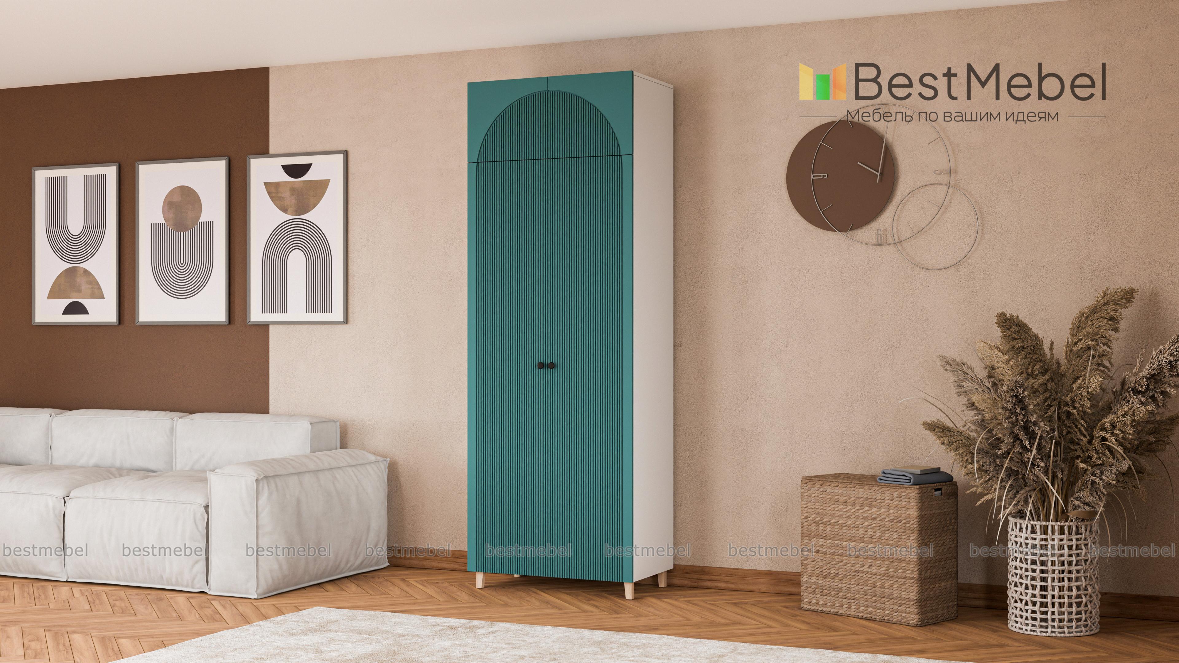 Шкаф распашной Вивьен 5 BMS сэкономит место и сохранит вещи в порядке. Высокая конструкция с деревянными ножками, просторной антресолью и штангой за двумя дверцами выручит вас, когда пространство комнаты ограничено. Стилистическим акцентом в интерьере современной квартиры станет оформленный трендовым рельефом фасад из МДФ. Купить шкаф распашной Вивьен 5 BMS вы сможете в нашем интернет-магазине с индивидуальным подбором размеров, цвета и наполнения.