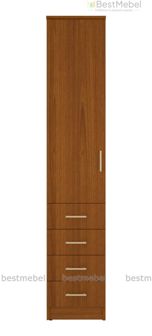 Зодиак 1.4 Шкаф распашной BMS сэкономит пространство небольшой комнаты или дополнит шкафную группу в спальне или прихожей. Объединивший функции тумбы и пенала, узкий шкаф оборудован распашным отделением с полками и четырьмя ящиками в основании. Ламинированные поверхности с древесным рисунком просты в уходе и надолго сохраняют эстетичный внешний вид. Купить Зодиак 1.4 Шкаф распашной BMS приглашаем в наш интернет-магазин с выбором фурнитуры и цвета по каталогу.
