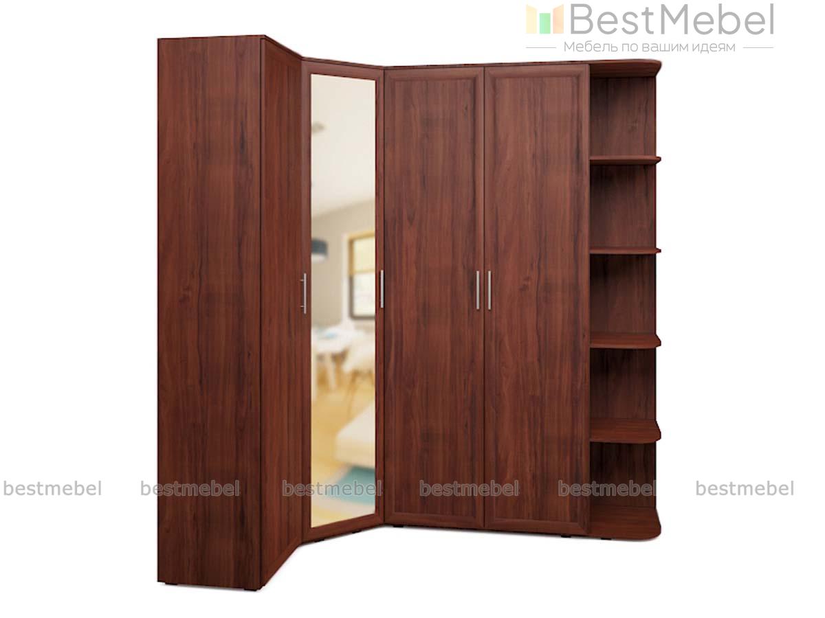 Аврелий 2 шкаф угловой прекрасно впишется в интерьер прихожей, гостиной, спальни. Выполнен в сдержанном лаконичном стиле. Придаст индивидуальности облику Вашего дома. Центральная угловая секция укомплектована дверкой с зеркалом во весь рост. Оно визуально расширяет пространство. Боковые шкафы способны вместить все виды одежды и различные вещи. Завершает композицию стеллаж с закругленными открытыми полками, на котором удобно располагать книжки, домашние растения, красивые статуэтки, элементы декора.