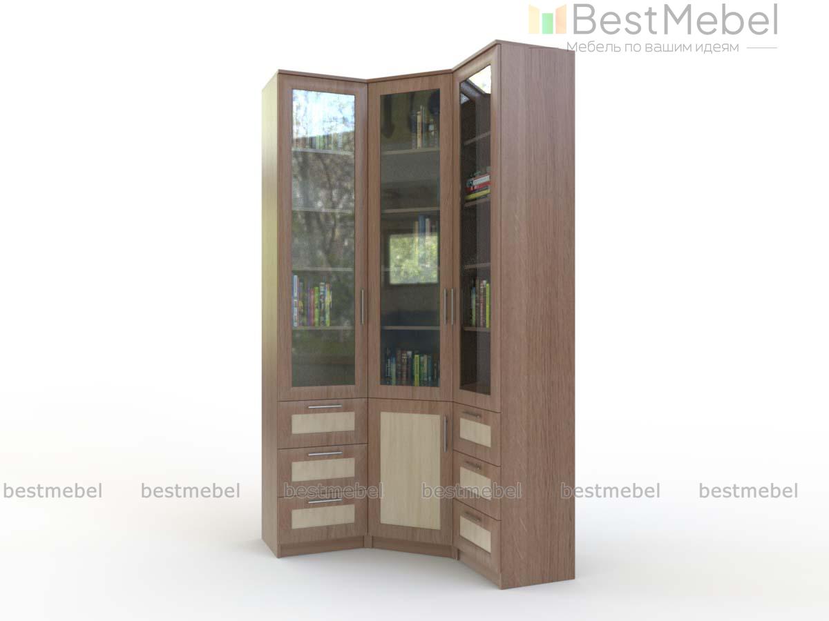 Шкаф угловой МБ-54 BMS будет гармонично смотреться в интерьере гостиной или рабочего кабинета. Комбинированная конструкция шкафа позволит разместить не только книги, но и документы, канцелярские принадлежности и прочие мелочи. Классическая модель с рамочными фасадами в древесных тонах оборудована тремя застекленными распашными отделениями, одним глухим и шестью выдвижными ящиками. Купить шкаф угловой МБ-54 BMS приглашаем в наш интернет-магазин, подобрав оптимальное цветовое решение.
