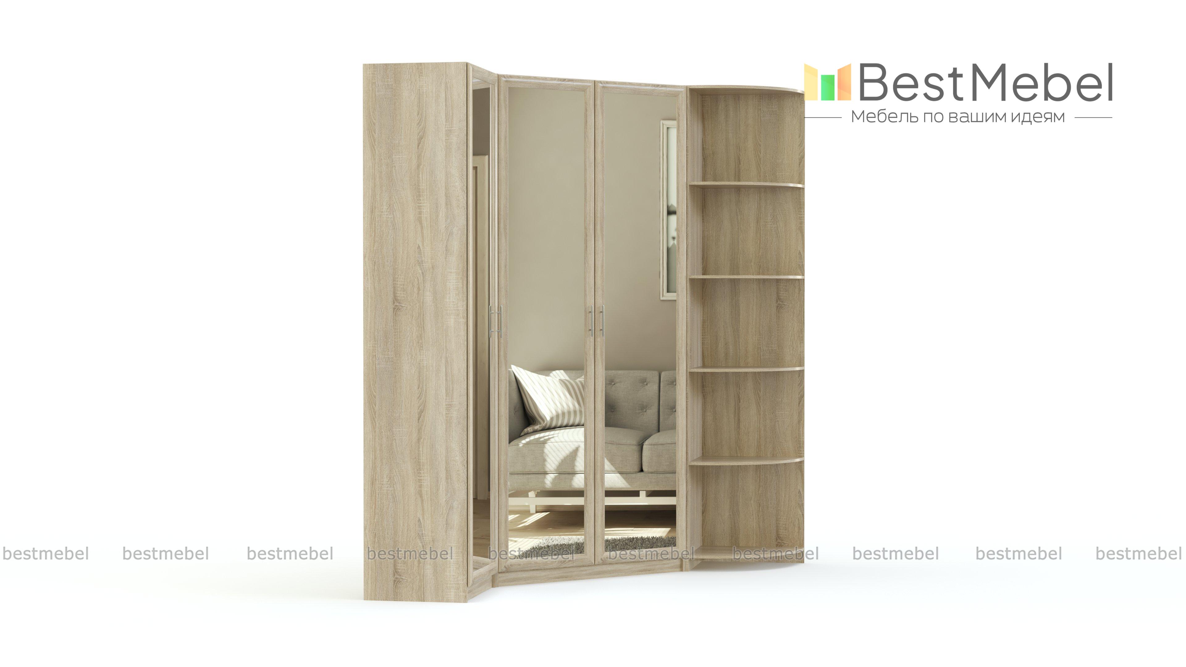 Шкаф угловой Наполеон 13.1 BMS поможет рационально использовать пространство и компактно разместить все необходимое – одежду, домашний текстиль, книги, декоративные мелочи. Угловая композиция включает в себя однодверный распашной шкаф, двухдверный и торцевой открытый стеллаж. Сочетание древесных оттенков и полностью зеркальных фасадов универсально для интерьеров разного типа и зрительно расширяет границы помещения. Купить шкаф угловой Наполеон 13.1 BMS приглашаем в наш интернет-магазин, подобрав необходимые параметры.