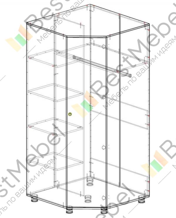 Шкаф угловой Роман BMS с корпусом в древесных тонах и цветным пастельным фасадом дополнит интерьер прихожей, спальни или детской комнаты. Благодаря трапециевидной форме распашной шкаф вместителен, но при этом экономно использует пространство. Круглые металлические опоры с регулировкой высоты обеспечивают конструкции устойчивость и легкость. Купить шкаф угловой Роман BMS вы сможете в нашем интернет-магазине, подобрав гармонирующее с интерьером цветовое решение.