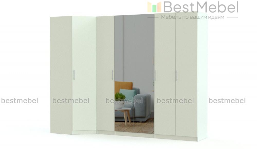 Угловой шкаф Фрея 1 BMS имеет практичную Г-образную форму, которая позволяет выгодно использовать особенности планировки и сэкономить пространство. Композиция включает в себя угловой трапециевидный модуль, пенал и два двухдверных шкафа, оборудованных полками и штангами. Шкаф нейтрального белого цвета, дополненный зеркальными полотнами, органично вписывается в интерьеры стиля минимализм и делает комнаты визуально просторнее и светлее. Купить угловой шкаф Фрея 1 BMS приглашаем в наш интернет-магазин с возможностью изменения цвета и размеров.