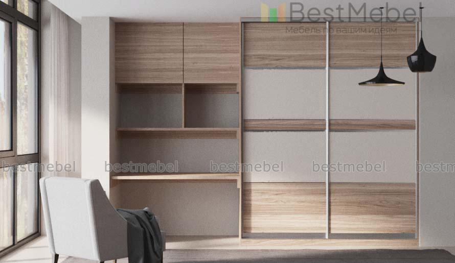 Шкаф-купе Sena P-022 BMS по достоинству оценят те, кто предпочитает интерьеры в стиле минимализм. Эффективно использовать пространство поможет встроенная композиция, включающая в себя двухдверный шкаф-купе для одежды, письменный стол и антресоль с глухими и открытыми полками. Продуманное сочетание элементов позволит компактно разместить вещи и обустроить комфортное рабочее место, сэкономив полезную площадь спальни или гостиной. Купить шкаф-купе Sena P-022 BMS, выполненный в натуральных тонах под древесный массив, приглашаем в наш интернет-магазин.
