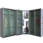 Угловой шкаф 33 BMS – это эффектный современный дизайн и высокая функциональность конструкции. Разноуровневая встроенная модель гармонично сочетает нейтральные оттенки корпуса, стекло и отделку серебристым профилем. Визуально легкая композиция включает в себя угловой шкаф с зеркальным фасадом, однодверное и два двухдверных раздвижных отделения. Для мелочей и декоративных предметов предусмотрены радиусные торцевые стеклополки. Купить Угловой шкаф 33 BMS для интерьера спальни приглашаем в наш интернет-магазин.