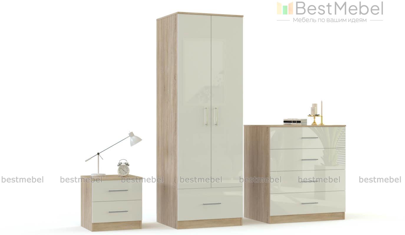 Класс 2 набор для спальни глянцевый BMS дополнит интерьер небольшой современной спальни в стиле минимализм. В комплект входят двухдверный комбинированный шкаф, комод с четырьмя выдвижными ящиками и компактная тумба, благодаря которым вы без труда разместите предметы гардероба, постельное белье и необходимые под рукой мелочи. Темный глянец фасадов эффектен, устойчив к повреждениям и прост в уходе. Купить Класс 2 набор для спальни глянцевый BMS вы сможете в нашем интернет-магазине, подобрав оптимальные параметры.
