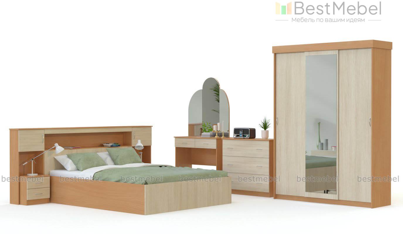 Спальня Бася BMS понравится тем, кто предпочитает простые и функциональные современные дизайны. Комплект будет органично смотреться и в просторном, и в небольшом помещении, обеспечив владельцев всем необходимым для комфортного отдыха, хранения вещей и ухода за собой. Двуспальная кровать не только удобна, но и практична – панель изголовья совмещена с распашными шкафчиками, прикроватными тумбами и нишами для мелочей. Шкаф-купе позволит сэкономить полезную площадь, а постельное белье легко разместится в выдвижных ящиках комода. Незаменимая деталь – элегантное трюмо. Купить спальню Бася BMS приглашаем в наш интернет-магазин.