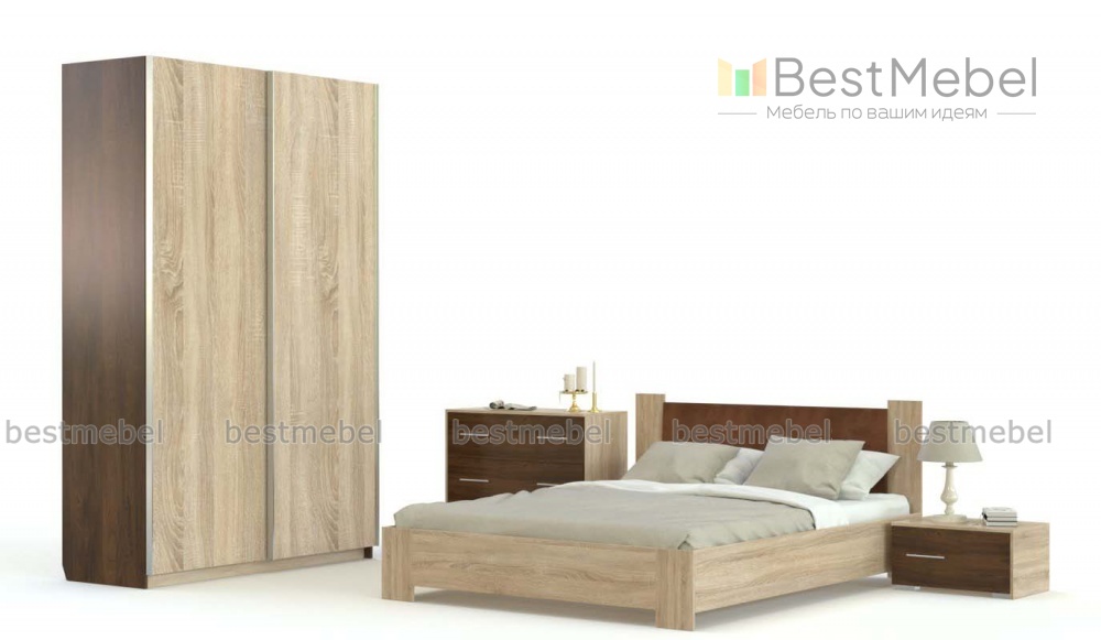 В комплект спальни Джулия 2 BMS входит двуспальная кровать, 2-хдверный шкаф-купе, прикроватная тумба интересного дизайна на 1 выдвижной ящик и комод с тремя выдвижными ящиками, оборудованными надежной стильной фурнитурой. Такая модель станет хорошим выбором для Вас и Вашей семьи. Купить спальню Джулия BMS можно на сайте нашего магазина по выгодной цене, подобрав оптимальные размеры.