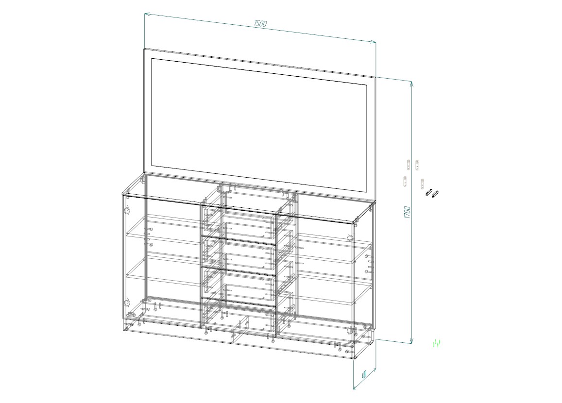 Шкаф 1600х2100х530мм, компоновка белье-платье-белье,