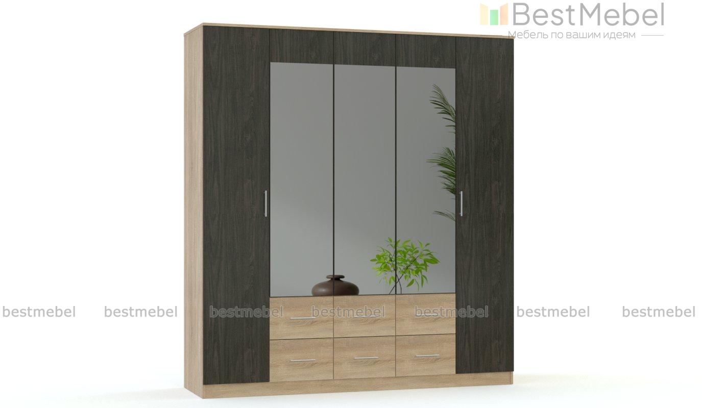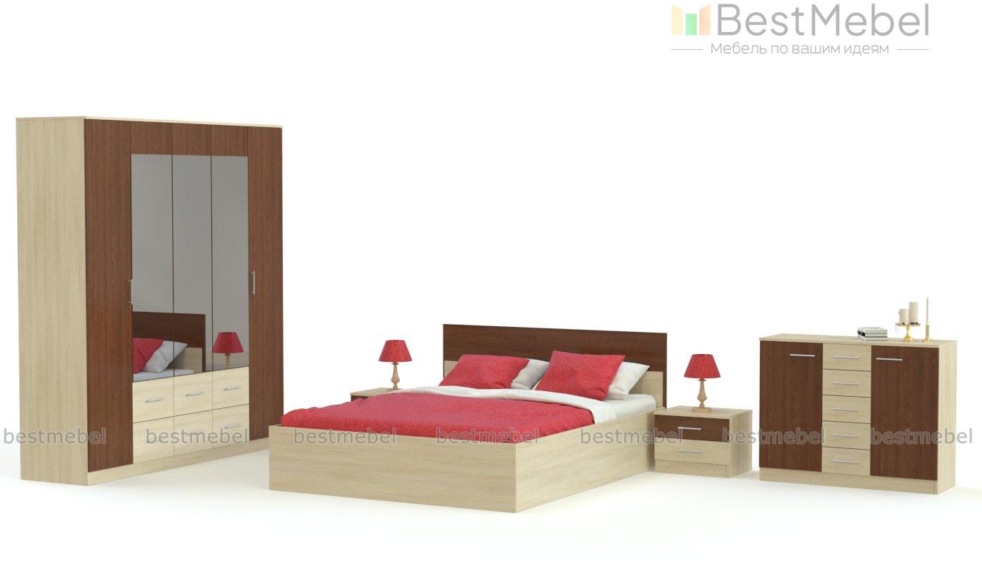 Спальня Модерн 14 BMS оставит о себе незабываемое впечатление. Комплект состоит всего из пяти предметов мебели, но их оформление притягивает восторженные взгляды многих покупателей. Пятистворчатый шкаф наполнен не только полками, современными держателями одежды, но и выдвижными ящиками. Зеркальные вставки заменяют панно с зеркалом. Кровать… Она ни с чем несравнима. Её невероятно удобное основание и спинка способствуют полноценному крепкому сну. Прикроватные тумбочки позволяют поставить лампу, личные принадлежности, вазу с цветами. Мебельный комплект дополняется и многофункциональным комодом. Его наполнение состоит не только из ящиков, но и полок. Изящная фурнитура, великолепное сочетание древесной породы с тёмным оттенком не оставят Вас равнодушными. Купить спальню Модерн 14 BMS по низкой цене можно только на нашем сайте.