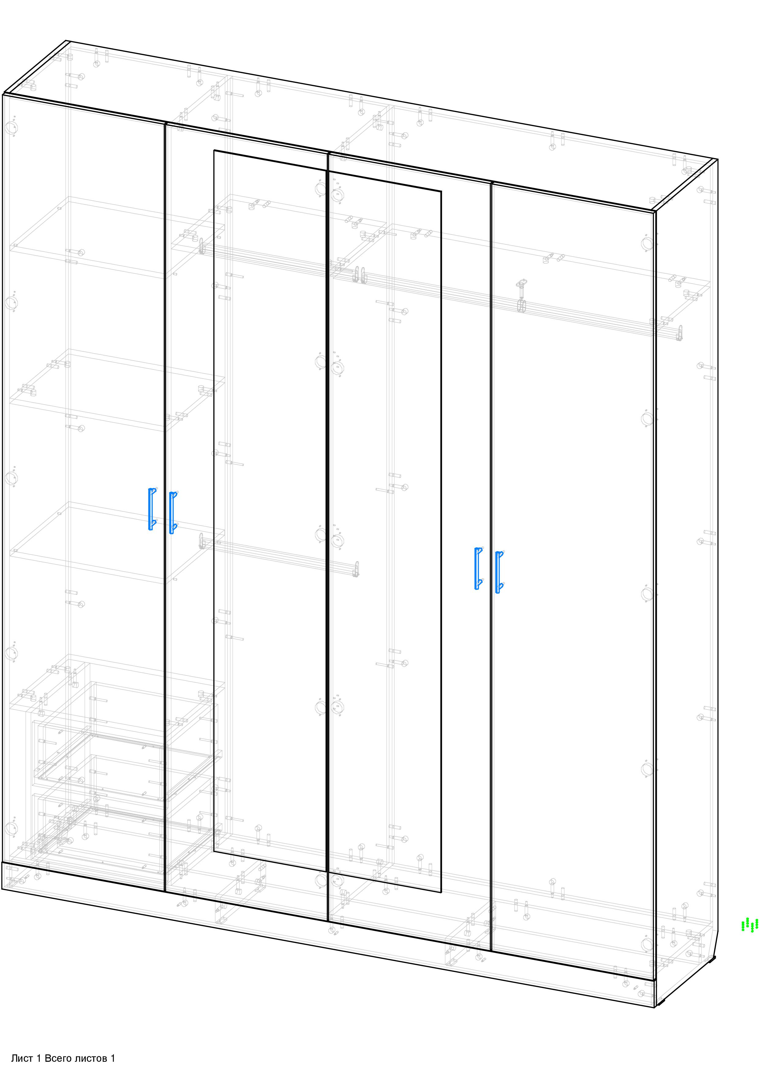 Шкаф распашной 1600х2100х520мм (компоновка Белье-Платье-Белье).