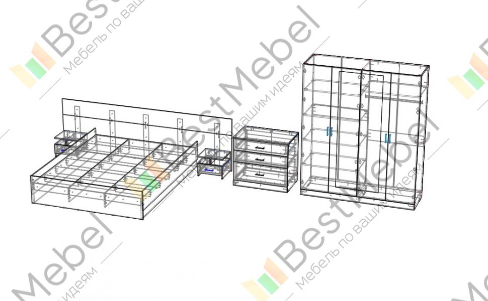 Спальный гарнитур Уют BMS изготовлен из качественного материала нового поколения ЛДСП. Он станет идеальным бюджетным решением обустройства спальной комнаты. Модное сочетание контрастных цветов ставит его в один ряд с лучшими представителями мебельной моды. В комплекте кровать на двоих, тумбочки, комод с выдвижными ящиками, 4-х дверный распашной шкаф. Все элементы тщательно продуманы и создают великолепную композицию, которая подойдет для интерьера любого стиля. Предлагаем вам купить набор Уют BMS недорого, воспользовавшись каталогом нашего сайта, где вы найдете различные расцветки для мебели, линейку габаритных размеров, возможные варианты комплектации. Заявку можно оформить в режиме онлайн.