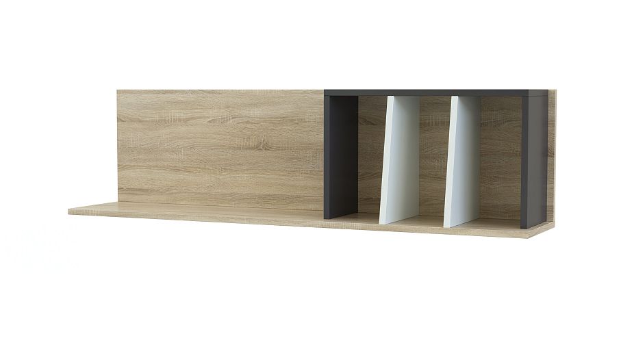 Навесная полка Жуан 3 BMS подчеркнет динамичный характер комнаты современного подростка. Стильная геометричная модель с полностью открытой и оборудованной разделителями секциями выполнена в контрастном сочетании черного, белого и древесного оттенка. Полка разместит учебные материалы, личные вещи и декоративные мелочи, помогая легко поддерживать в комнате порядок. Купить навесную полку Жуан 3 BMS приглашаем на сайт нашего интернет-магазина с учетом оптимальных размеров.