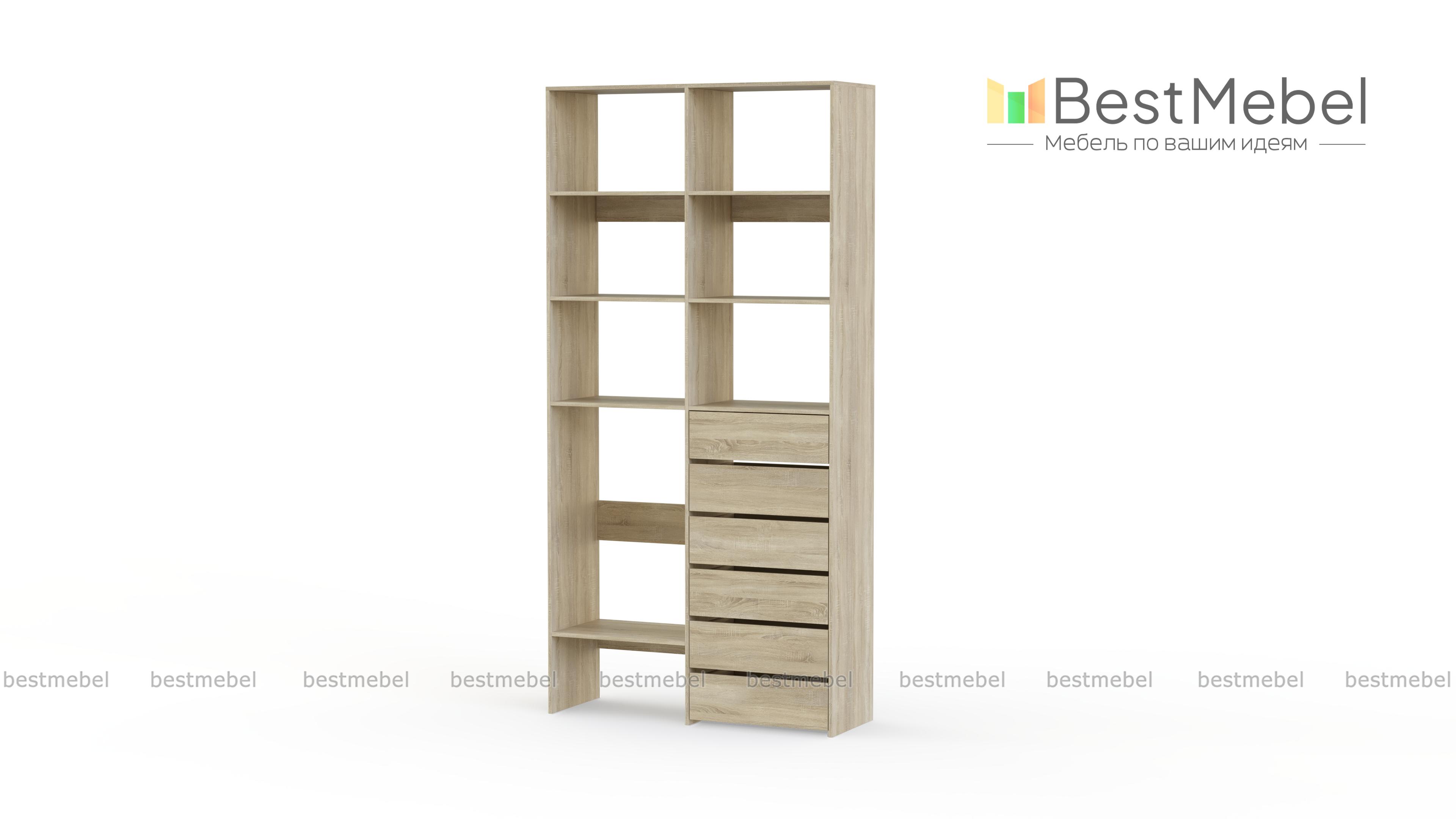 Стеллаж для одежды Мирта 39 BMS представляет собой готовое решение для вашей прихожей или гардеробной комнаты. Расположенные на разной высоте полки и целых шесть выдвижных ящиков позволят вам разместить как мелкие, так и габаритные вещи: одежду, обувные коробки и всевозможные аксессуары. Для изготовления стеллажа использован современный экологичный материал — ламинированная ДСП. Купить стеллаж для одежды Мирта 39 BMS в оттенках нашего каталога на выбор вы сможете на сайте интернет-магазина.