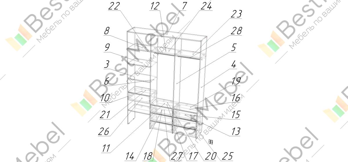 Стеллаж для одежды Мирта 52 BMS оборудован не только двумя штангами, но и расположенными на разных уровнях выдвижными ящиками и полками. Конструкция позволяет вам бережно разместить вещи на вешалках и трикотаж, коробки с обувью и корзины со всевозможными мелочами. Стеллаж выполнен из прочной ЛДСП, что обеспечивает ему долгий срок службы и эстетичный внешний вид. Купить стеллаж для одежды Мирта 52 BMS вы сможете в нашем интернет-магазине, подобрав размеры и цвет по каталогу.