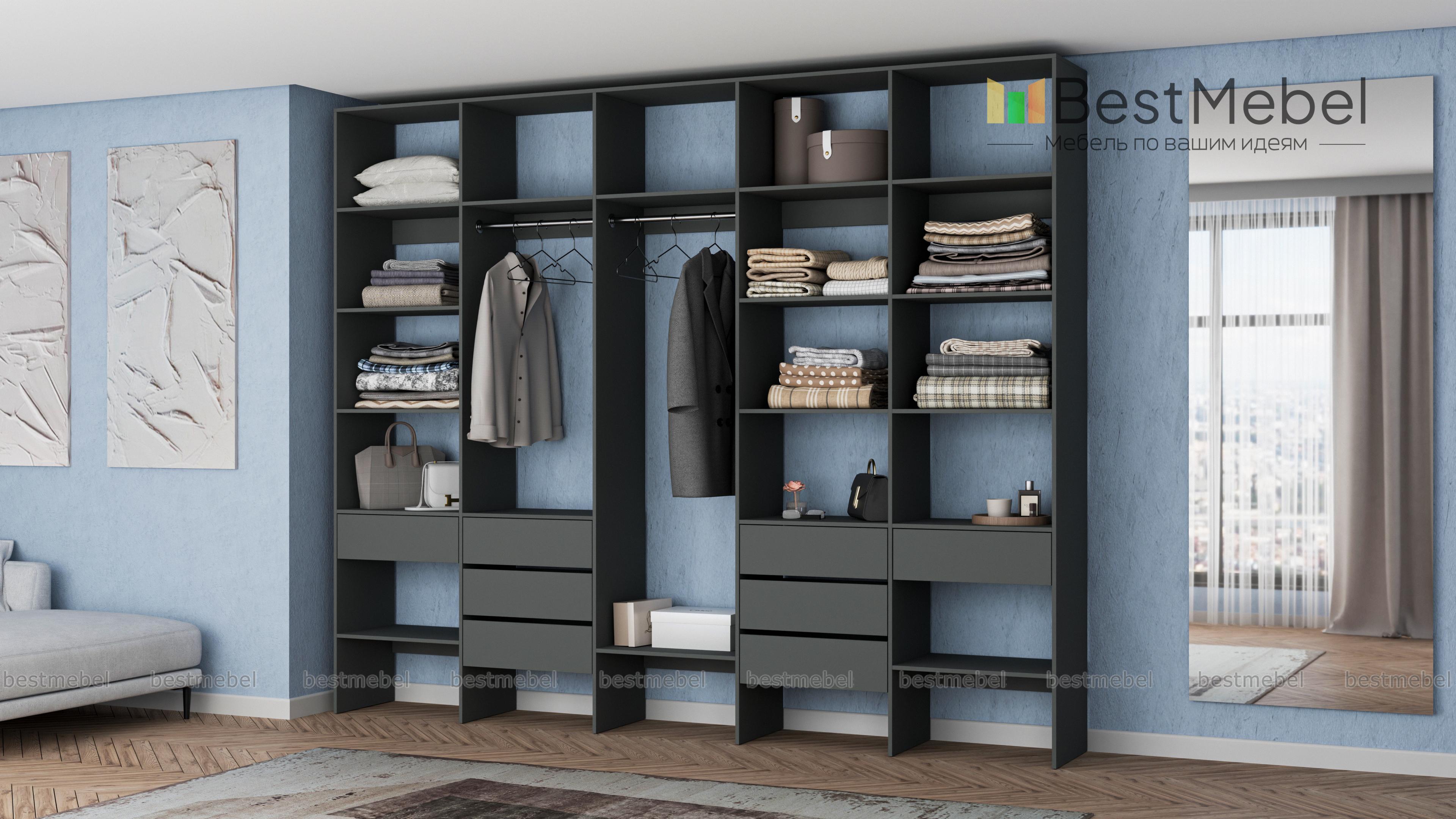 Стеллаж для одежды Мирта 72 BMS поможет вам обустроить зону для хранения вещей. Пять секций стеллажа оборудованы полками, двумя штангами и комбинацией из восьми выдвижных ящиков, позволяя выделить зоны для разных типов одежды, обуви и аксессуаров. Ламинированная ДСП в сочетании с качественной фурнитурой создает долговечную и эстетичную конструкцию. Купить стеллаж для одежды Мирта 72 BMS, подобрав оптимальные размеры и оттенок для вашего интерьера, приглашаем в наш интернет-магазин.
