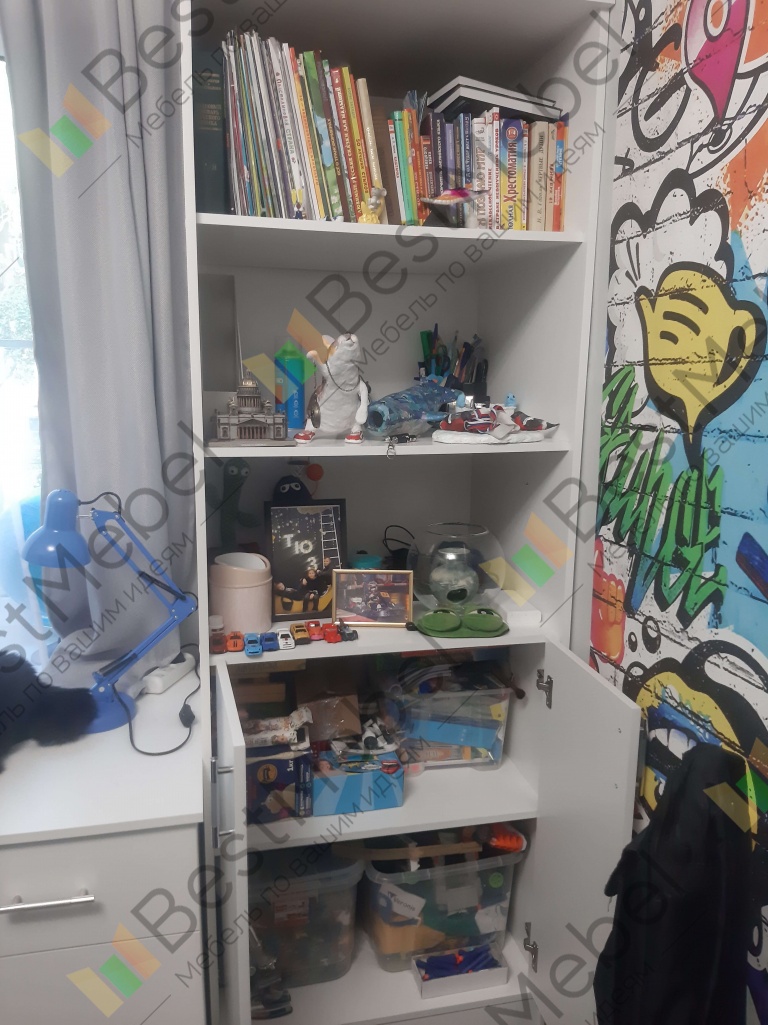 Заказывали этот шкаф в комнату дочери. С компанией БестМебельШоп было легко работать на всех этапах - от подбора модели шкафа до доставки. Удобный сайт, хорошие консультанты в службе поддержки. Качество шкафа соответствует заявляемому, собрать было просто.Заказ 00000184044, изделие ЭСКИЗ №00000184044 Стеллаж комбинированный Примо 1 BMS (600х2000х370).