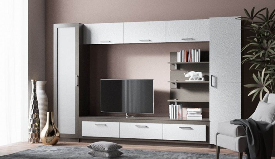 Модульная гостиная Александрия-1 BMS поможет эффективно использовать пространство и органично впишется в современные интерьеры. Композиция объединяет бельевой и застекленный пеналы, широкую низкую тумбу под аппаратуру, навесные открытые полки и глухие шкафчики. Фасады древесных тонов декорированы эффектными вставками из экокожи. Купить модульную гостиную Александрия-1 BMS вы сможете в нашем интернет-магазине, подобрав оптимальное цветовое решение.