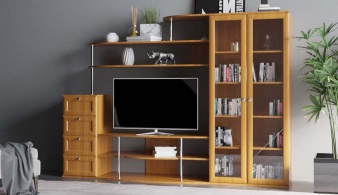 Стенка-горка Ева-2 BMS поможет интересно оформить зону ТВ в небольших помещениях. Разноуровневая композиция включает в себя распашной книжный шкаф с застекленными дверцами, тумбу под аудио- и видеоаппаратуру с нишами, высокую тумбу с четырьмя выдвижными ящиками для бытовых мелочей и открытые полки на хромированных опорах. Рамочные фасады выполняются в нескольких древесных оттенках на выбор и гармонично впишутся в интерьер. Купить стенку-горку Ева-2 BMS по доступной цене приглашаем к нам в интернет-магазин.
