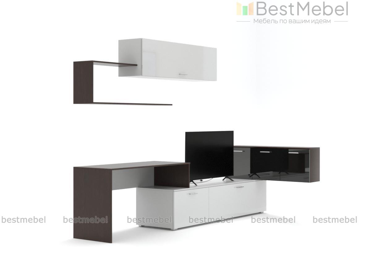 Стенка со столом Бланка BMS станет выгодным приобретением для владельцев небольших квартир и студий. Эффективно использовать доступное пространство вам поможет многофункциональная композиция, включающая в себя широкую тумбу под ТВ, письменный стол, навесную тумбу с тремя отделениями, горизонтальный шкафчик и открытую книжную полку. Лаконичный дизайн модели подчеркнет контрастное сочетание венге, черного и белого глянца. Купить стенку со столом Бланка BMS вы сможете по доступной цене в нашем интернет-магазине.