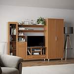 Уникальное сочетание классики и современности никого не оставит равнодушным. Триумф-2 станет идеальным решением для небольших гостиных. Центральное место отведено для ТВ, размер ниши позволит разместить в ней модель и с большой диагональю. Платяной шкаф, пенал, тумба, дополненная открытым отделением для дисков и ящичком для мелких предметов: зарядок, ключей ‒ все продумано до мелочей. Комодный ящик внизу позволит с удобством хранить личные вещи. Купить недорого стенку Триумф-2 можно в нашем интернет-магазине.