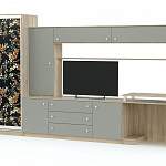 Стенка в гостиную Техно 11 BMS – многофункциональная современная модель, объединившая удобную систему хранения, зону ТВ и комфортное рабочее место. Шкаф-купе с растительной фотопечатью на фасаде гармонично дополняют тумба под аппаратуру, компьютерный стол и навесные элементы, выполненные в модной бежевой гамме с имитацией древесной текстуры. Сочетание эргономичности и креатива станет лучшим выбором для интерьера современной гостиной. Купить стенку в гостиную Техно 11 BMS по отличной цене приглашаем в наш интернет-магазин.