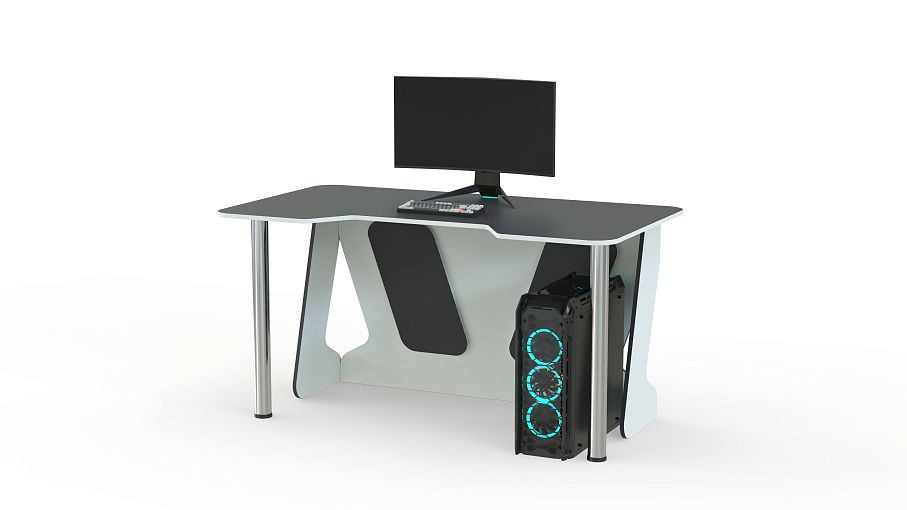 Геймерский стол Финн-3 BMS – это эффектная модель в черно-белой гамме с комбинированными опорами – из ЛДСП и регулируемыми хромированными. Просторная столешница скруглена по углам и имеет трапециевидный вырез в передней части, который обеспечивает комфортное положение тела во время игры и снижает нагрузку на локти. Легкость и надежность конструкции придает задняя стенка с декоративными вырезами. Купить геймерский стол Финн-3 BMS приглашаем в наш интернет-магазин с выбором цвета по каталогу.