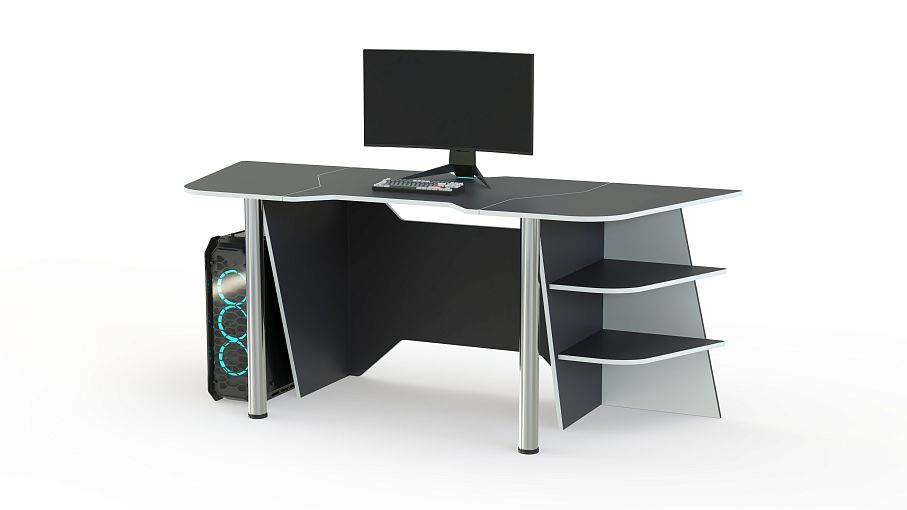 Геймерский стол Камелот-6 BMS – это широкая модель с составной столешницей в форме трапеции. Просторная рабочая поверхность дает возможность разместить всю необходимую технику, а для системного блока, книг и сопутствующих аксессуаров предназначены боковые открытые секции. Эффектный вид ультрасовременной модели придают декоративные вырезы на задней стенке и контрастное сочетание черного и белого. Купить геймерский стол Камелот-6 BMS вы сможете на сайте нашего интернет-магазина.