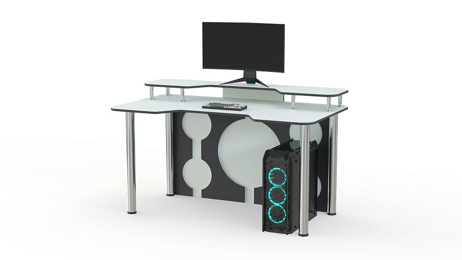 Игровой стол Европа 15 BMS эффектно впишется в современный интерьер и поможет обустроить комфортное геймерское пространство. Легкая и устойчивая благодаря регулируемым хромированным опорам, модель выполнена в контрастной черно-белой гамме. Столешница с эргономичной выемкой переднего края дополнена надстройкой под монитор и периферийные устройства, задняя стенка декорирована круглыми вырезами. Купить игровой стол Европа 15 BMS приглашаем в наш интернет-магазин с возможностью изготовления по индивидуальным размерам.