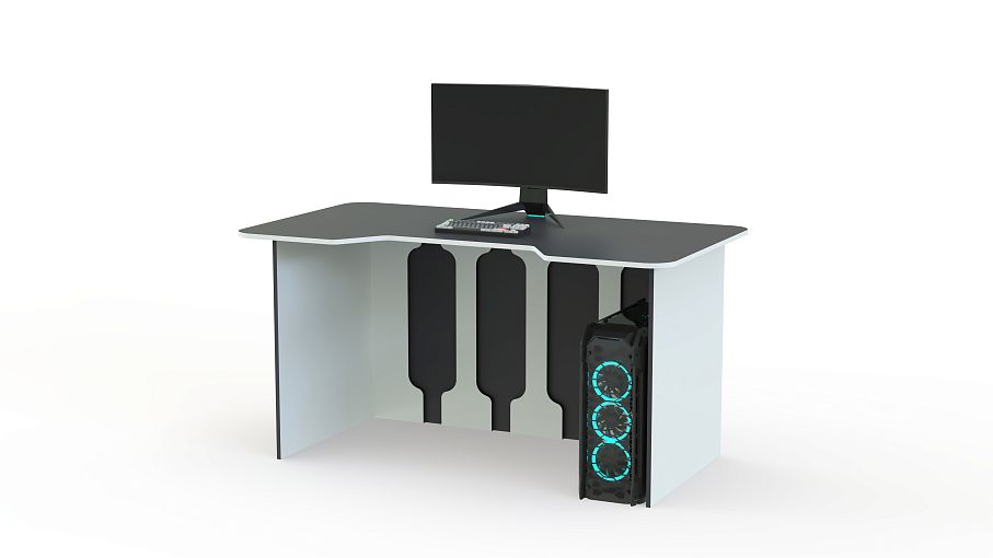 Игровой стол Стар-2 BMS предназначен для геймеров и тех, кто проводит много времени за компьютером. Занять правильное положение поможет столешница с эргономичной выемкой, а просторная рабочая поверхность позволяет разместить монитор и необходимые периферийные устройства. Минималистичный дизайн стола с декоративными вырезами на задней стенке и боковинах эффектно подчеркивает контрастная черно-белая гамма. Купить игровой стол Стар-2 BMS вы сможете недорого в нашем интернет-магазине.