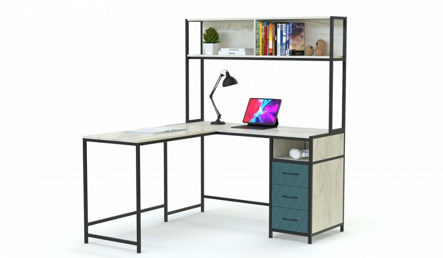 Компьютерный стол Флора 12 BMS представляет собой оригинальное решение для меблировки помещения в стиле индастриал или лофт. Композиция состоит из просторной угловой столешницы, надстройки с широкой открытой полкой и вместительной тумбы в основании, что дает много возможностей для размещения техники, книг и канцелярии. Выдвижные ящики украшены черными ручками-скобами и стильной геометричной фрезеровкой. Купить с возможностью изменения размера и цвета компьютерный стол Флора 12 BMS приглашаем в наш интернет-магазин.