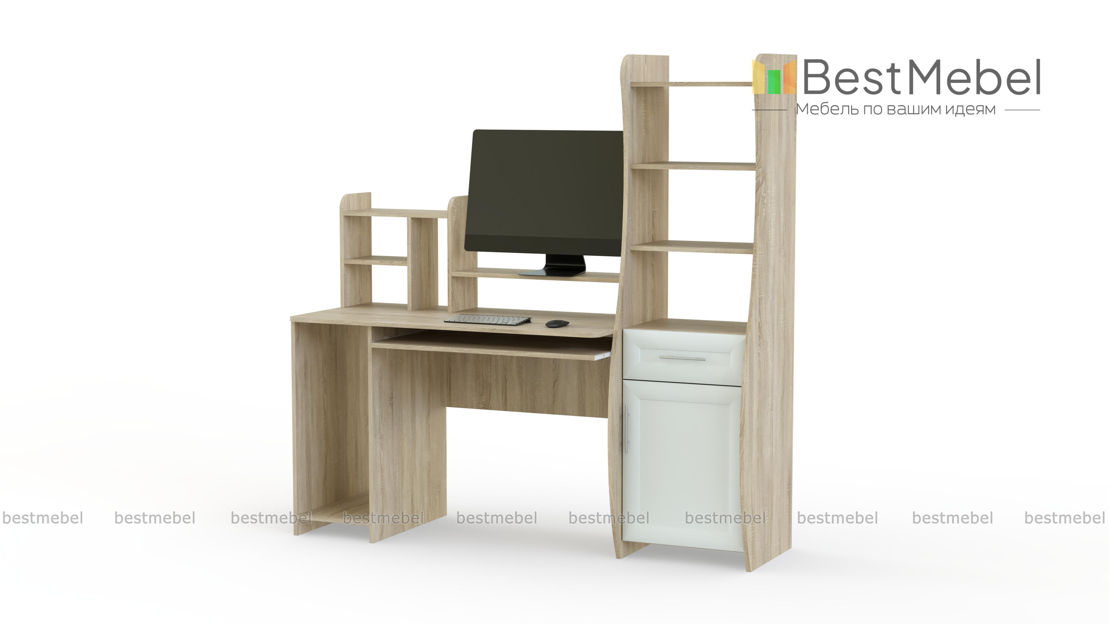 Эта модель привлекает особое внимание необычной формой боковой тумбы. Ее изогнутая форма придает мебели особый стиль и современный вид. Компьютерный стол Магнат имеет специальное место под системный блок, полку для монитора и выдвижную полочку для клавиатуры. Сбоку находится небольшая полочка мелочей и колонок, а просторная боковая тумба даст возможность разместить все необходимые бумаги, книги, канцелярские принадлежности и т.п. Заказать такую мебель Вы можете для дома или офиса.