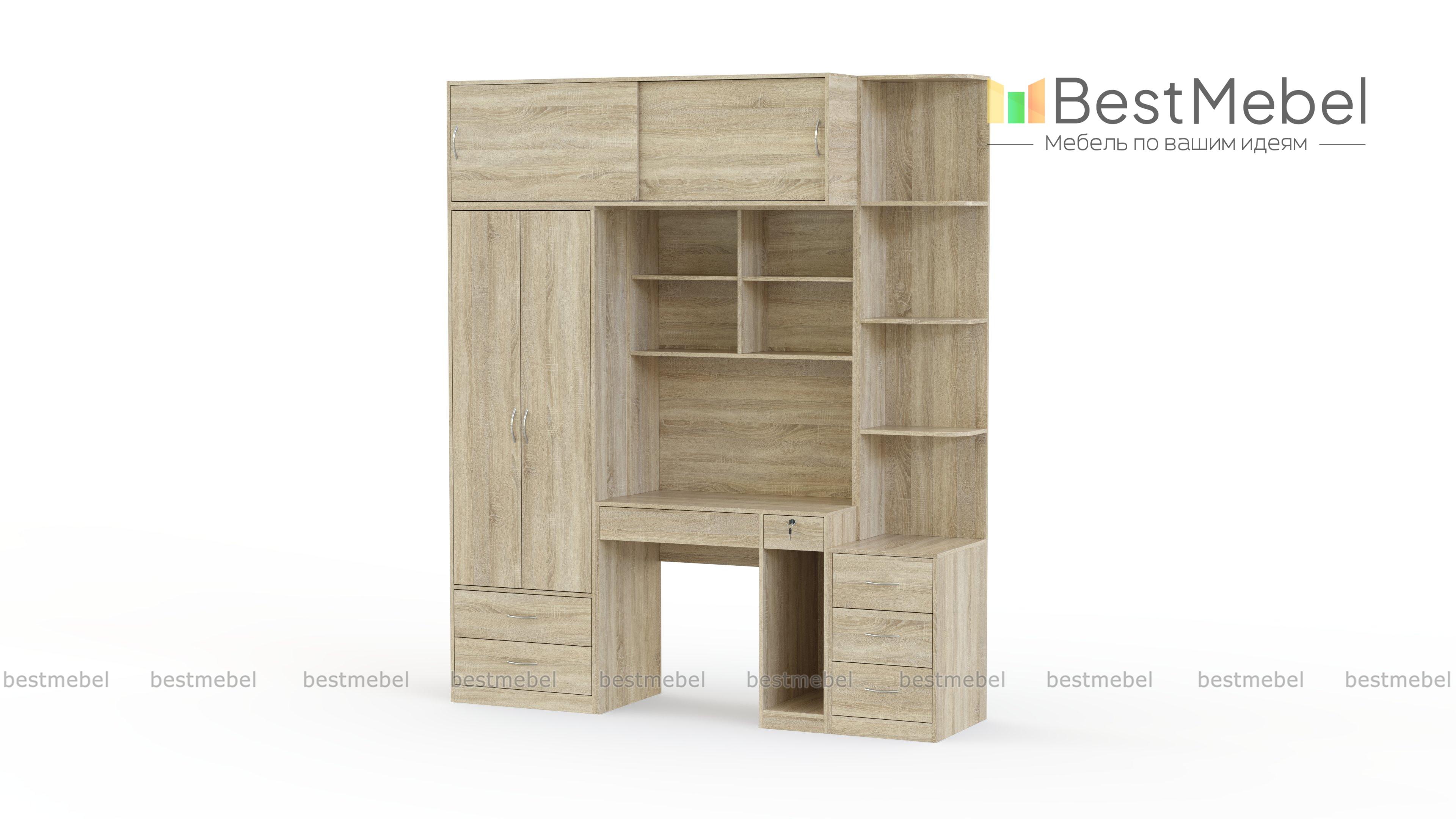Компьютерный стол Марта 5 BMS обеспечит значительную экономию полезной площади благодаря удобной системе хранения. Многофункциональная композиция включает в себя компьютерный стол, дополненный книжными полками и банкеткой, двухдверный платяной шкаф с ящиками в основании, раздвижную антресоль и секцию с тумбой и торцевыми радиусными полками. Универсальный белый цвет модели визуально облегчает интерьер. Купить компьютерный стол Марта 5 BMS приглашаем в наш интернет-магазин.
