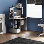 Компактный и многофункциональный компьютерный стол Мартин-2 идеально подойдет как для оформления рабочего места в офисе, так и для дома. Идеален для школьников. Стол оснащен надстройкой с двумя открытыми полками, полками под столешницей для хранения бумаг и книг. Оборудовано место для системного блока, а также имеется небольшой закрытый ящик внизу стола и выдвижная подставка для мыши и клавиатуры. Благодаря колесикам, отличается своей мобильностью. Заказать стол можно в нашем интернет-магазине.