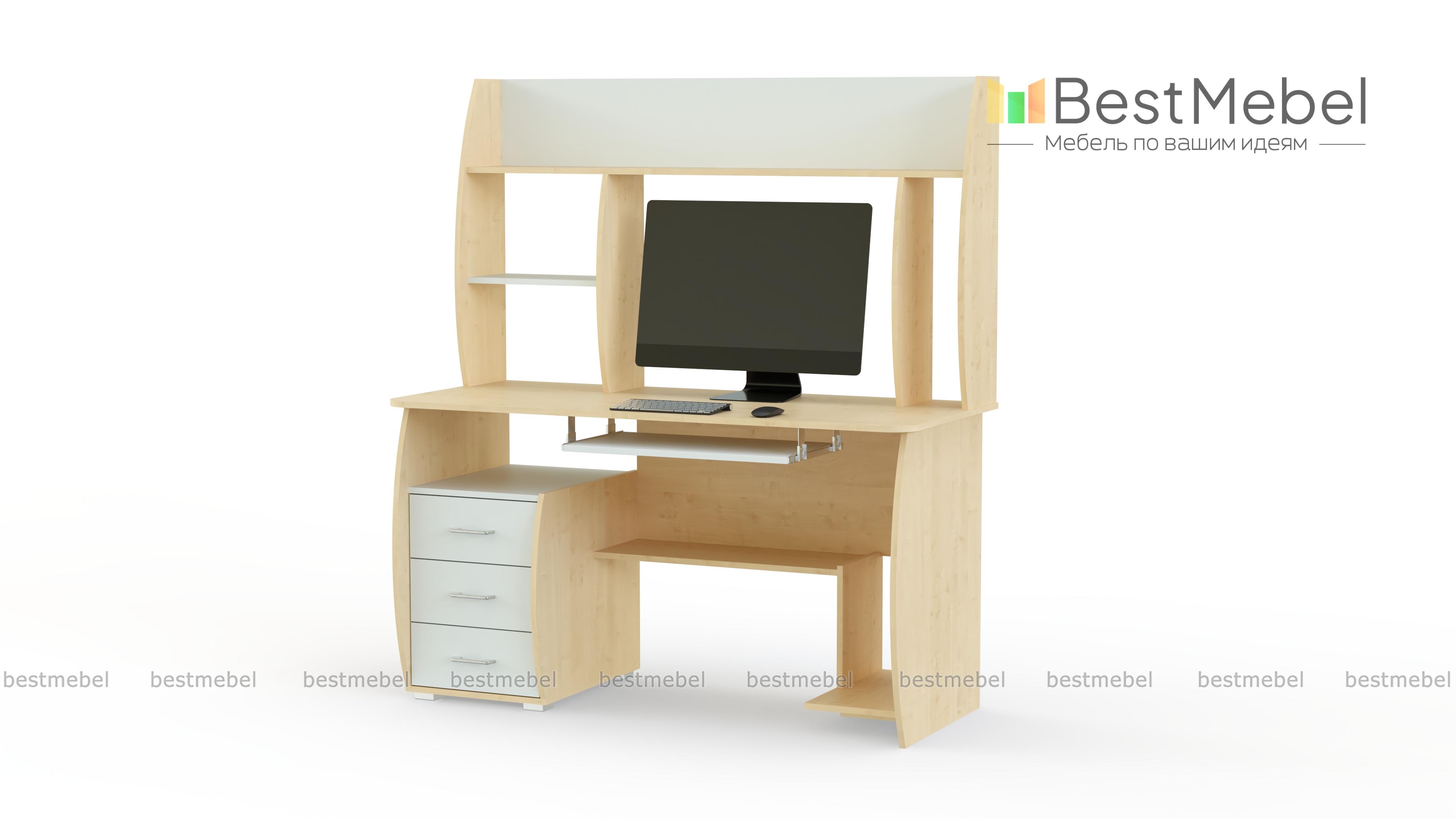 Компьютерный стол СК 16 BMS отличается функциональным и эргономичным дизайном. Конструкцией предусмотрены надстройка, позволяющая разместить рабочие материалы и сопутствующие аксессуары, а также полочка для клавиатуры, тумба с тремя выдвижными ящиками, нижняя полка и ниша под системный блок. Стильная особенность дизайна - чуть скругленные боковины и перегородки. Купить компьютерный стол СК 16 BMS вы сможете в нашем интернет-магазине, подобрав цвет и фурнитуру.