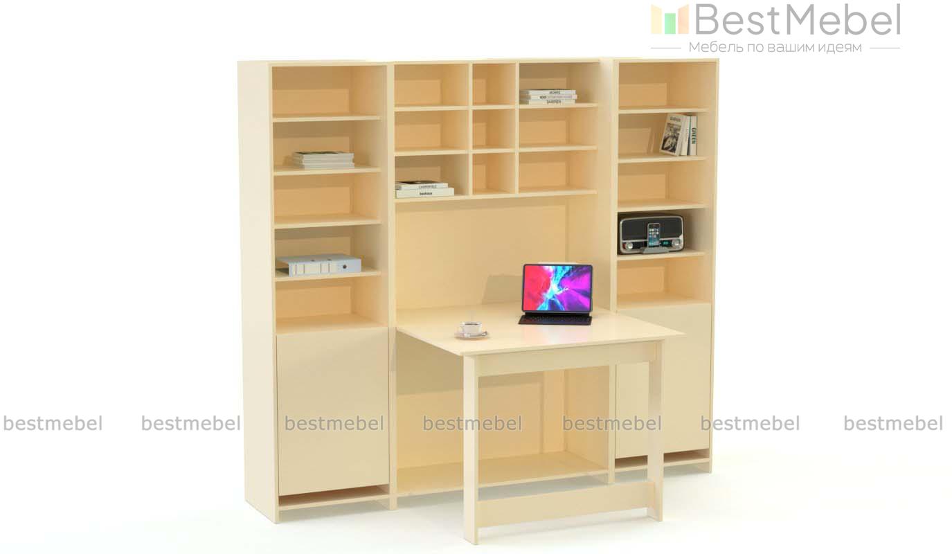 Компьютерный стол-трансформер Бонни 5 BMS представляет собой модульную стенку, которая поможет рационально организовать пространство дома или в офисе. Композиция включает собой стеллажи с полками разных размеров, двумя закрытыми отделениями и откидной столешницей. Модель поможет вам разместить в зоне быстрого доступа книги и бумаги, декоративные предметы и бытовые мелочи, а при необходимости вы получаете полноценное рабочее место. Купить компьютерный стол-трансформер Бонни 5 BMS с учетом необходимых размеров вы сможете в нашем интернет-магазине.